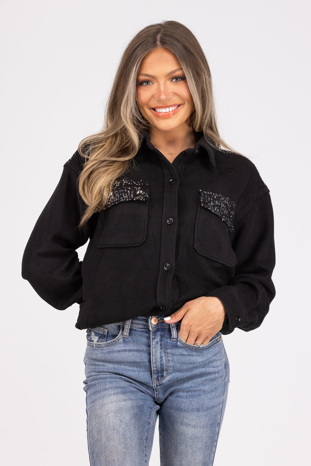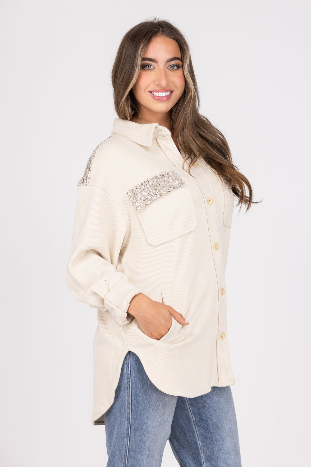 Can't Miss It Women's Sequin Corduroy Shacket