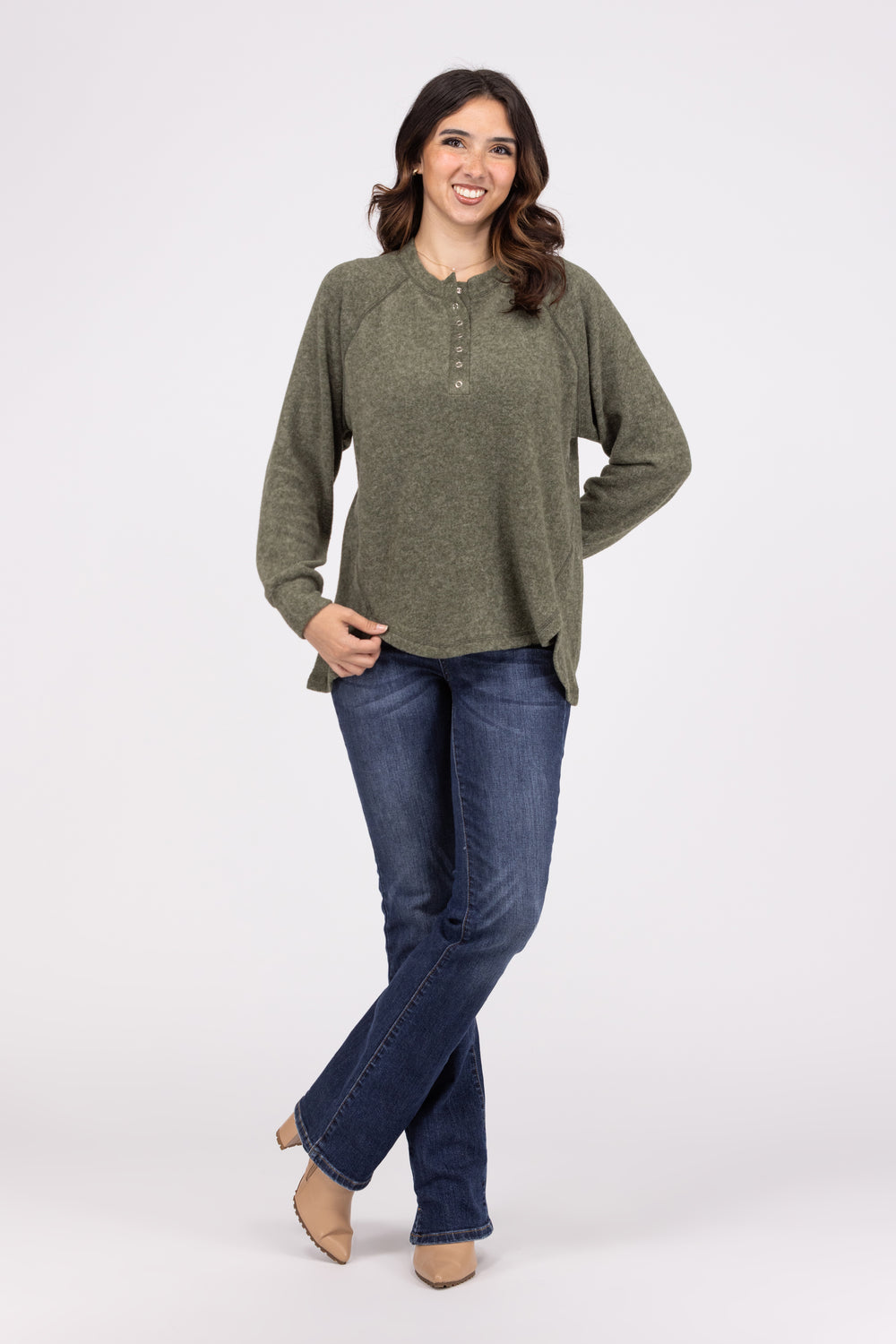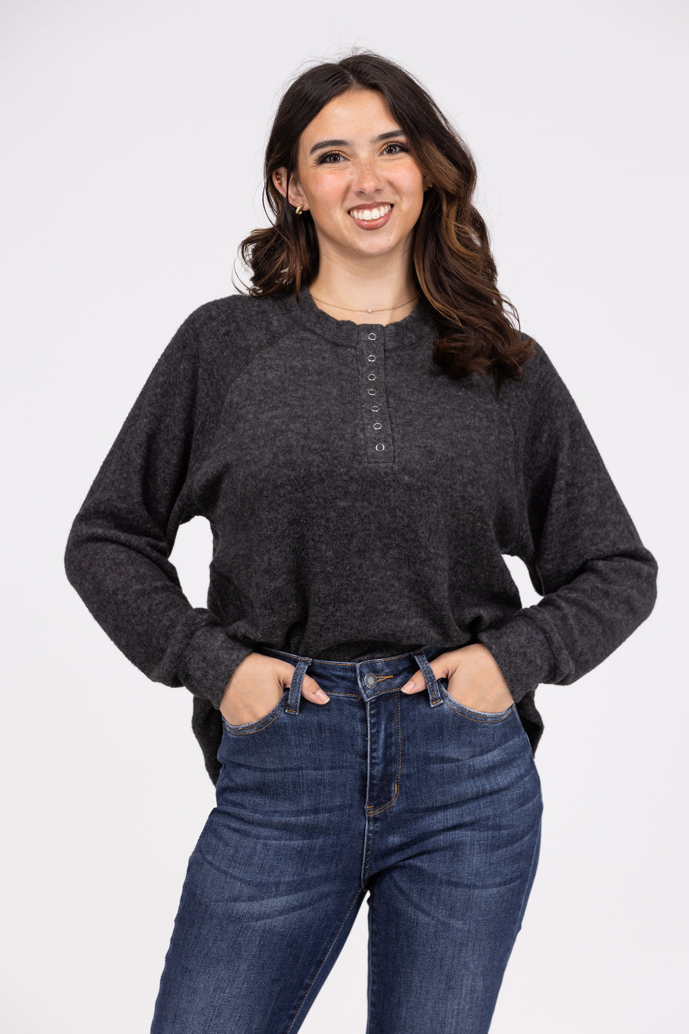 The Catching Dreams Long Sleeve is a perfect top for those chilly days. It features a soft stretchy material, a functioning button detail, its lightweight and you can pair it with a pair of denim and some nice shoes!