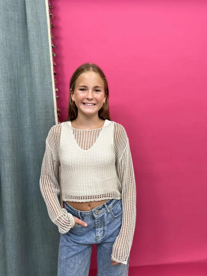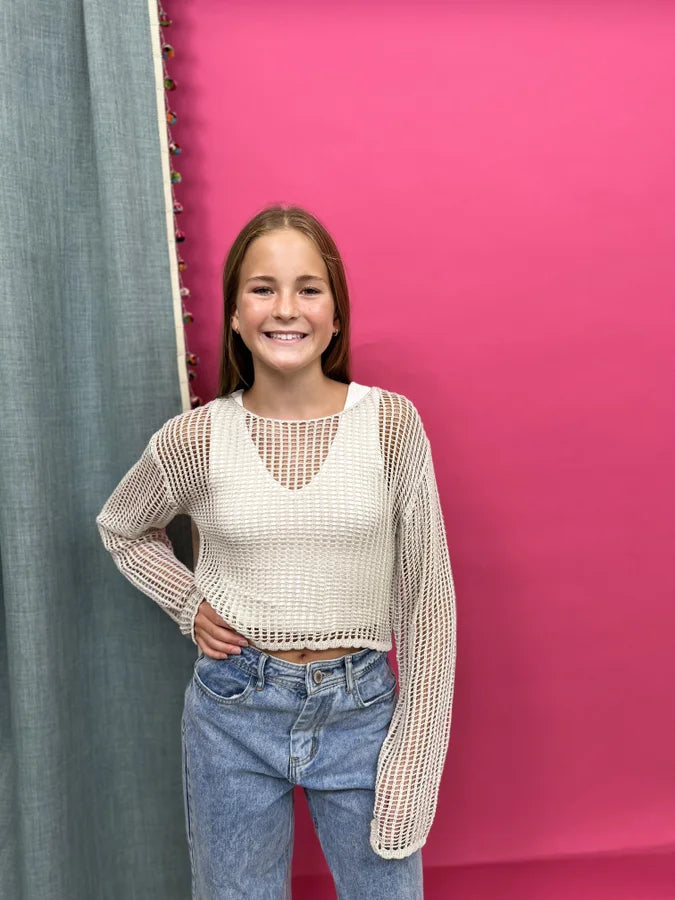 Caught Up Women's Crochet Long Sleeve Crop Top * Final Sale*