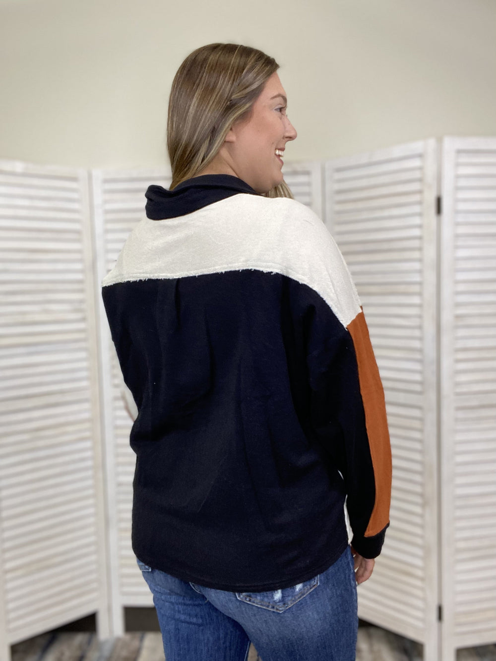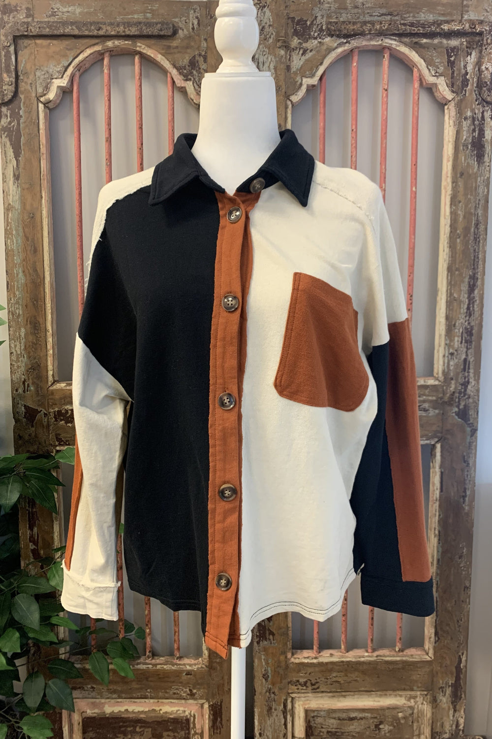 The Colors Unite Shacket By Fantastic Fawn is a lightweight top/jacket that is s a great transitional piece! It features a collared neckline, long cuffed sleeves, front button closure, one breast pocket, and a straight hemline. If you think most shackets are too heavy for you, then this is the shacket for you! Its color block pattern puts the whole thing together!