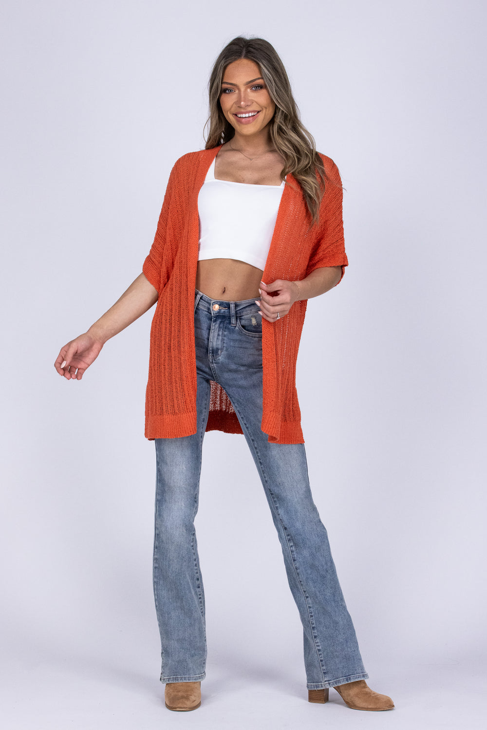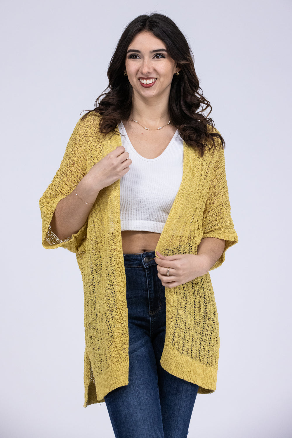 The Coming Through Cardigan by Heyson is the perfect layering piece! You can wear this over any of your favorite outfits! This cardigan features a open knit, short sleeves, open front and a straight hemline. The Coming Through Cardigan is sure to make any outfit pop!