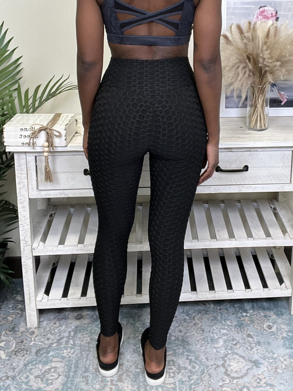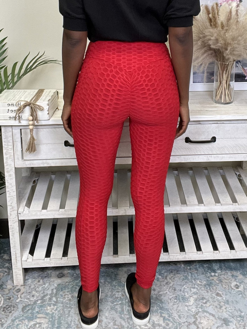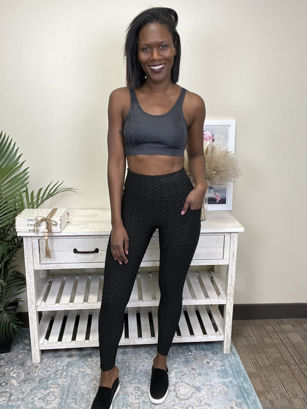 The Confidence Boost Leggings by White Birch are absolutely Peachy!! These high waisted leggings offer a wide yoga waistband, side pockets, and a countered back seamline. These textured leggings will definitely boost the size of your confidence!