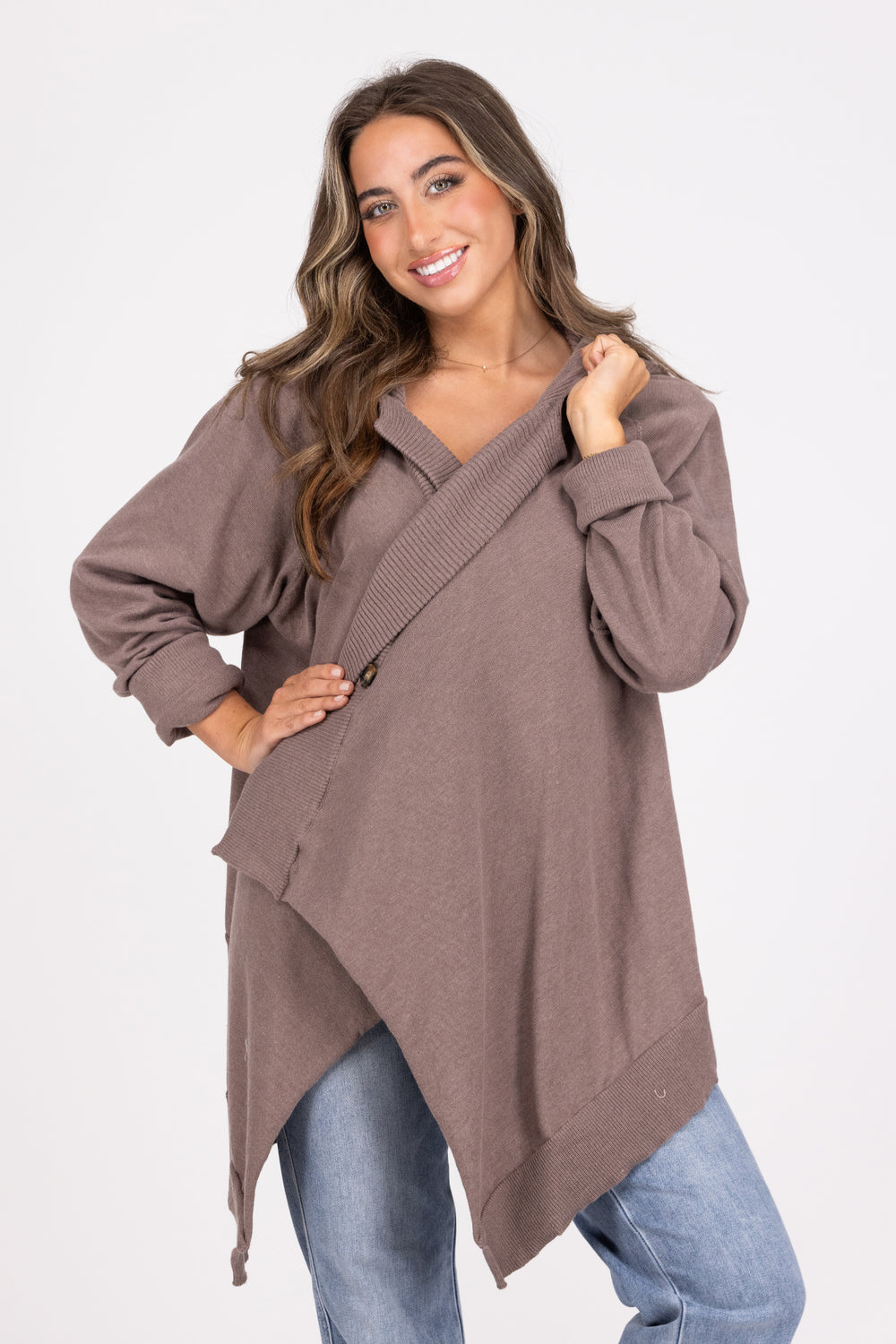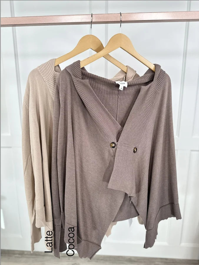 The Cozy Fireplace Cardigan by Heyson is great for those evenings in by the fireplace with a cup of hot chocolate. The Cozy Fireplace Cardigan features a hooded neckline, single button front closure, long sleeves, and a 9'' waterfall hemline. Pair with your favorite pair of denim and tall boots.