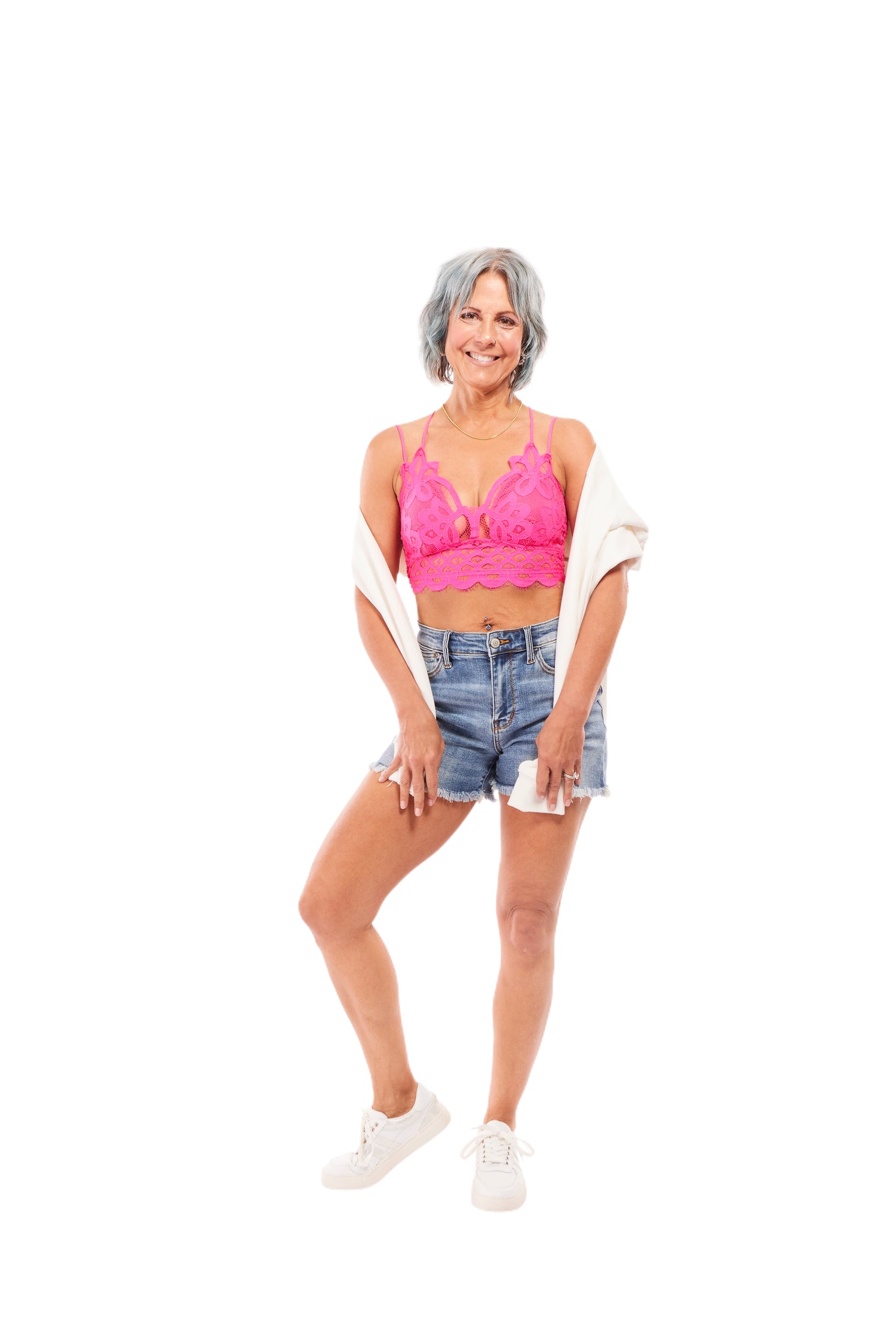 Introducing this Crochet Lace Bralette by Zenana! It features padding, a diamond shape smocking, and adjustable straps. This bralette is perfect to peak out of tank tops and sweaters to show off the crochet design!