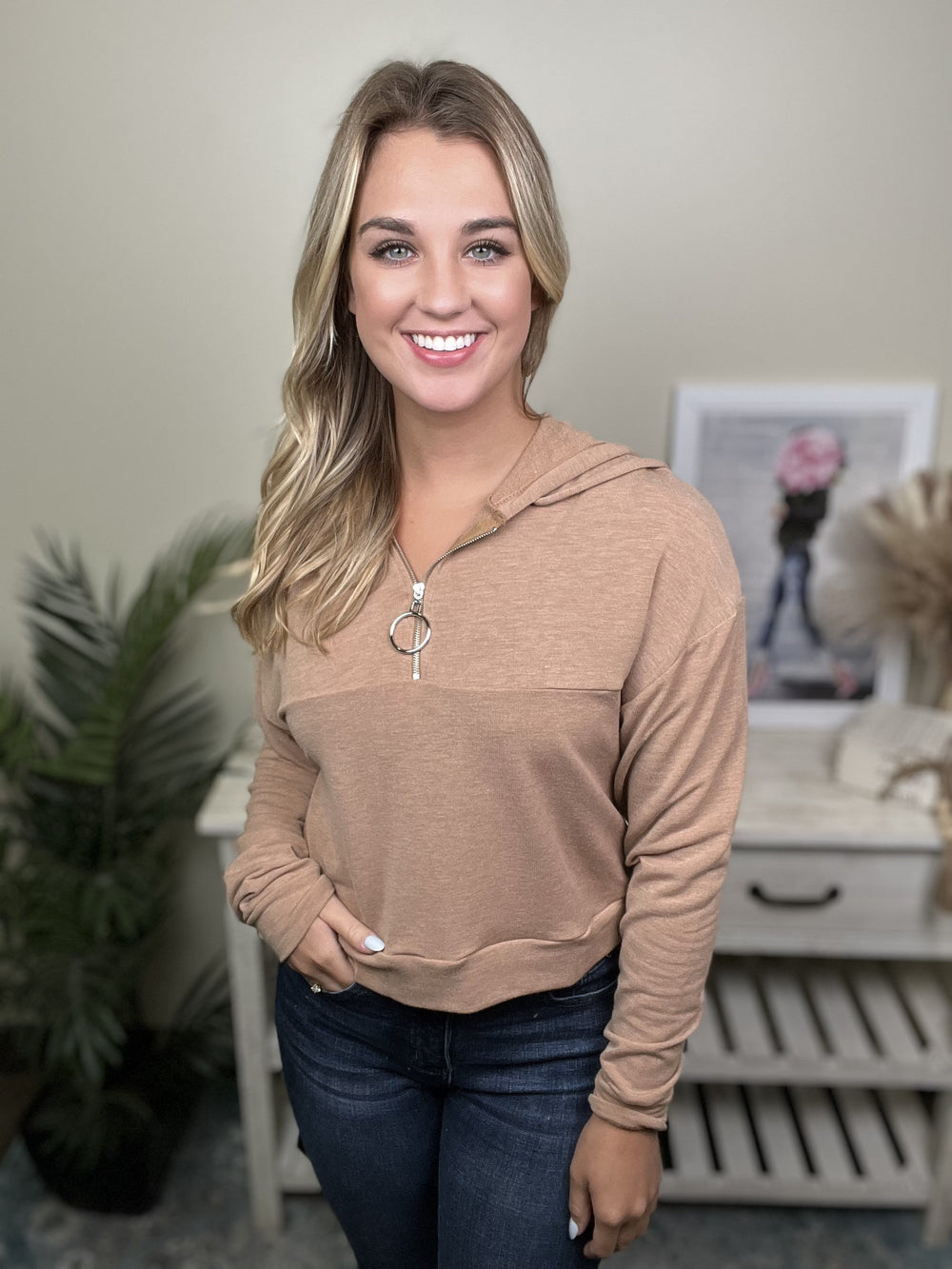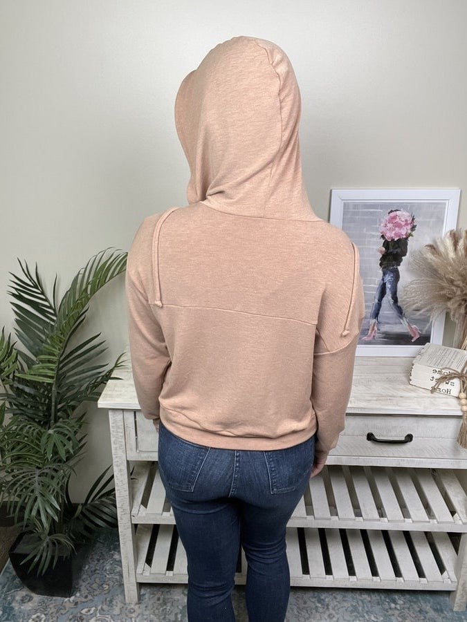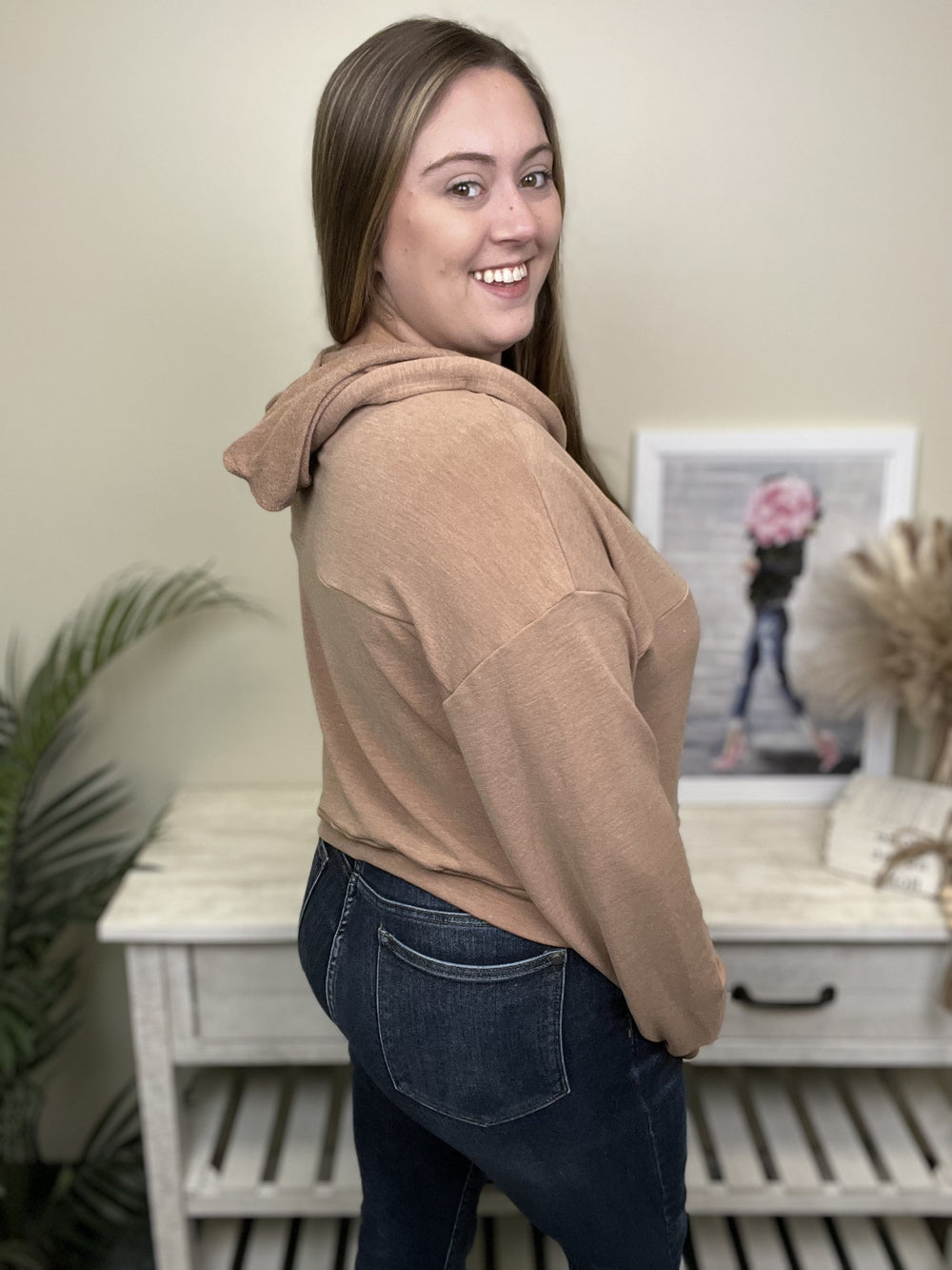 Don't be afraid to dance it out in the Dance It Out Top from White Birch! This hooded top features an adjustable drawstring, half zipper front with circle charm, cropped length, and a straight hemline. The long sleeve mean you can wear this cropped top in even colder weather!