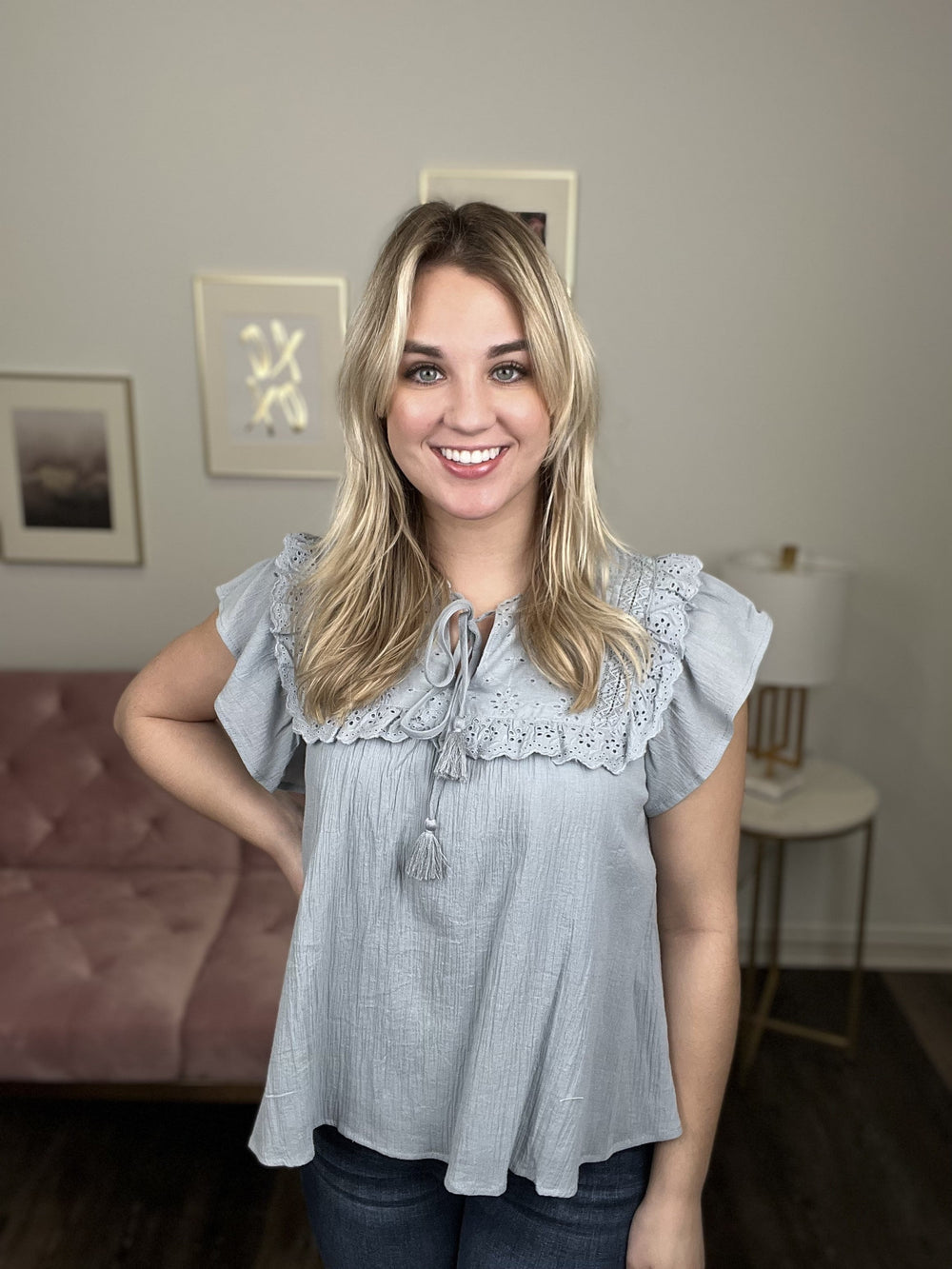 Dance With Somebody Women's Tassel Flutter Short Sleeve Top *Final Sale*