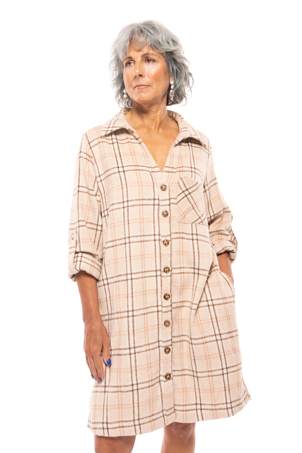 Dance your heart out with the Dancing In The Leaves Shacket Dress by Cozy Co! This dress features a button up detail, button tab sleeves, collared neck, a patched pocket and a plaid pattern. You can pair this with some nice shoes and jewelry if you want to add a little dazzle to your outfit!