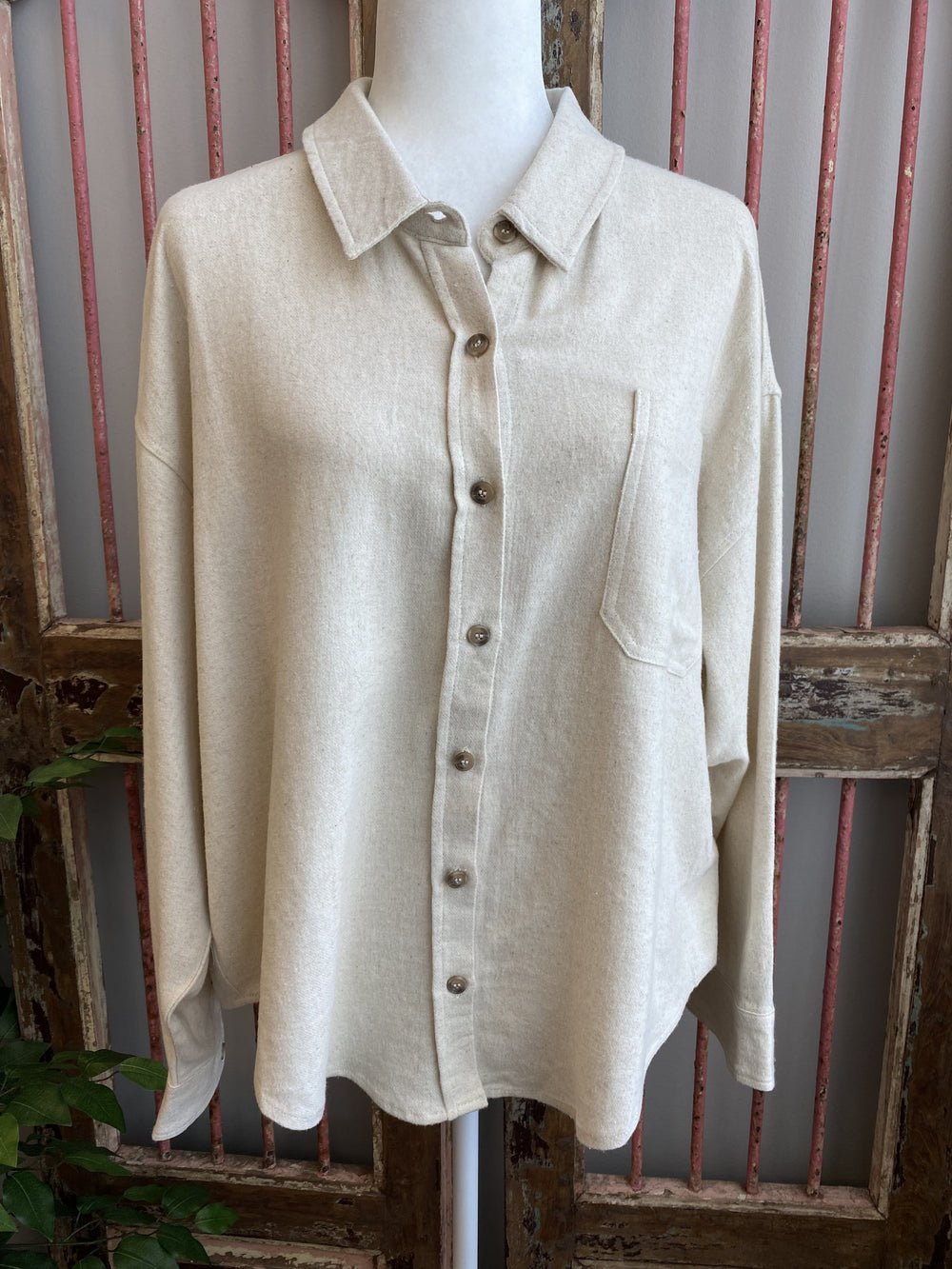 The Don't Change Your Mind Top by Wishlist is a functional button down shacket. It features a regular collar, rounded hemline, front pocket and button detailing on wrist cuff. Say goodbye to indecisiveness and hello to your new go-to shacket!