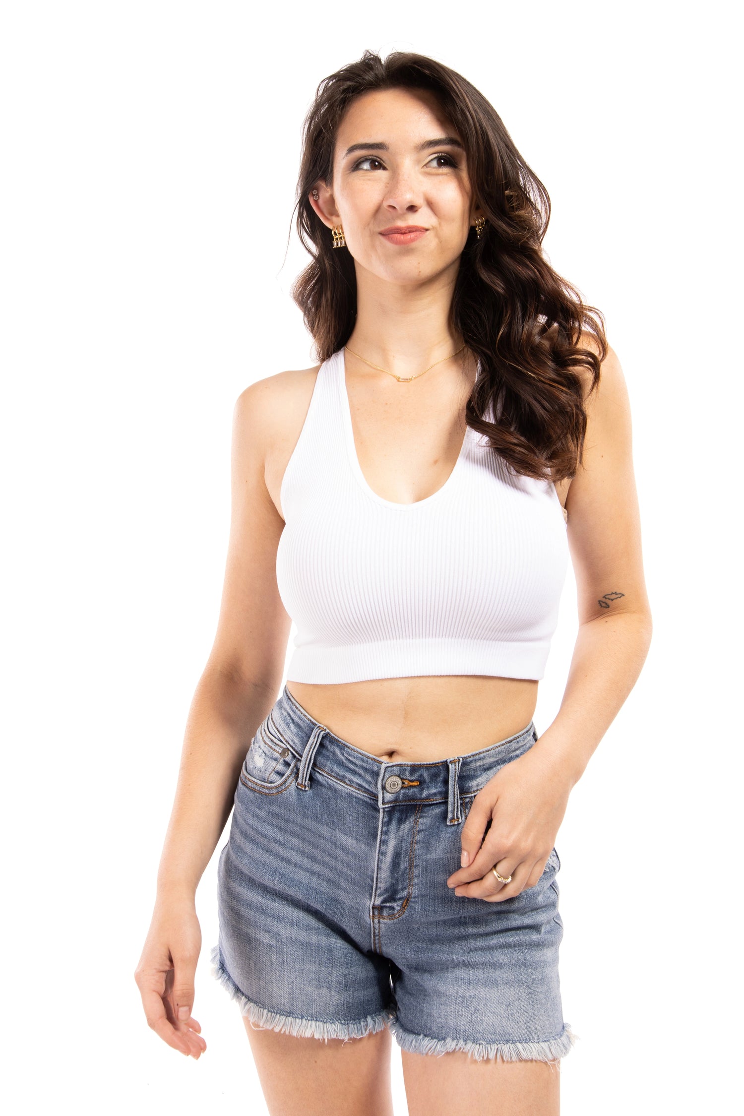 The Downward Dog Bralette by Zenana is a closet must have! This ribbed bralette features a racerback, and a V-neckline. This bralette is perfect to take you from yoga to running errands! Layer under a hoodie for ultimate comfort.