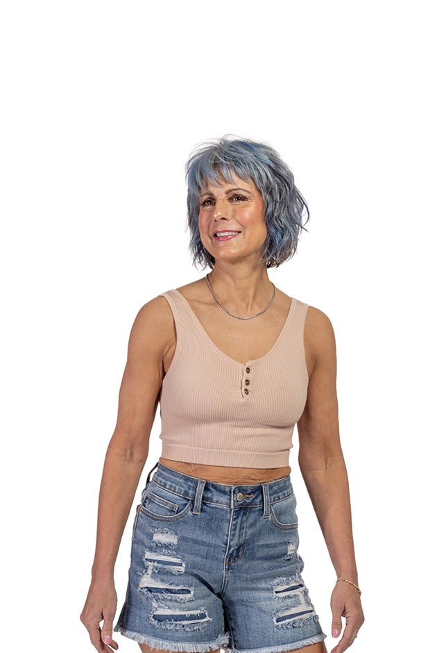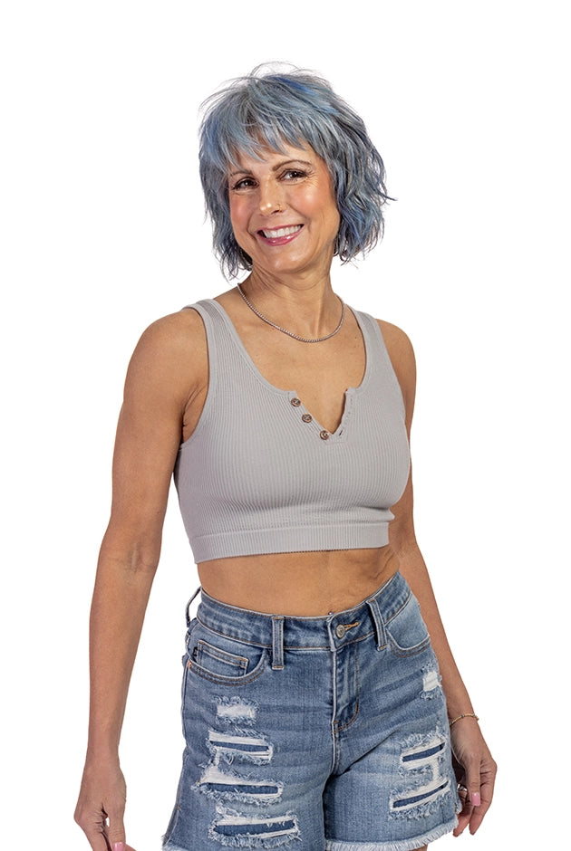 This Women's Button Detail Bralette from By Together is made of a stretchy ribbed fabric to give you a snug cozy fit. It features a rounded neckline with a V-slit and three functional buttons. This bralette will have you ready to lounge all day in your sweatpants or pair it with a flannel or cardigan for a laid back look.