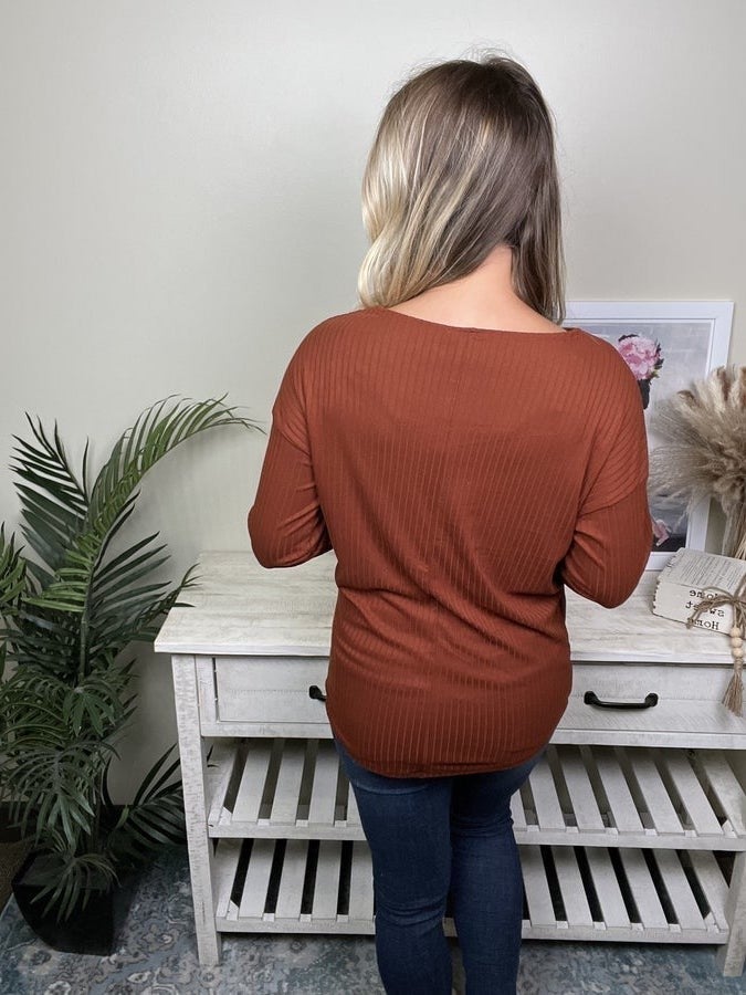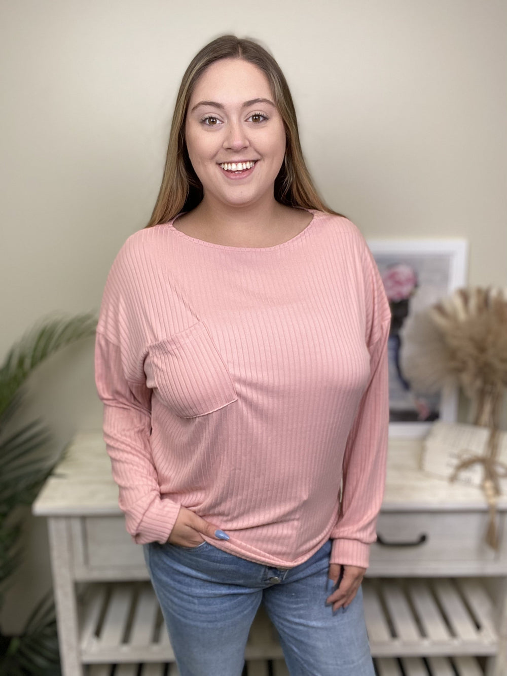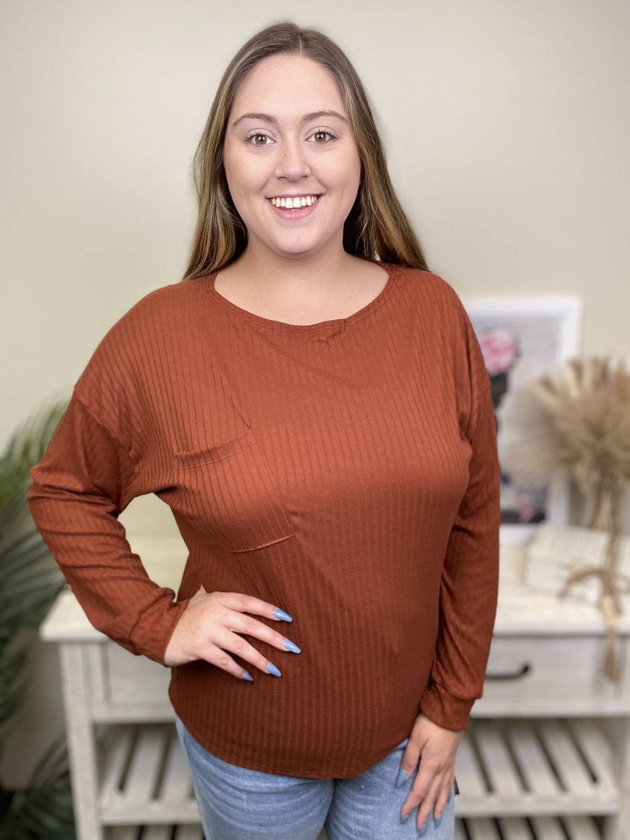 The Dreaming Bigger Top by White Birch is a long sleeve knit top featuring a rounded neckline, a front chest pocket, a rounded hi-lo hemline, and a soft, stretchy, ribbed self. The Dreaming Bigger Top goes great with leggings and denim.
