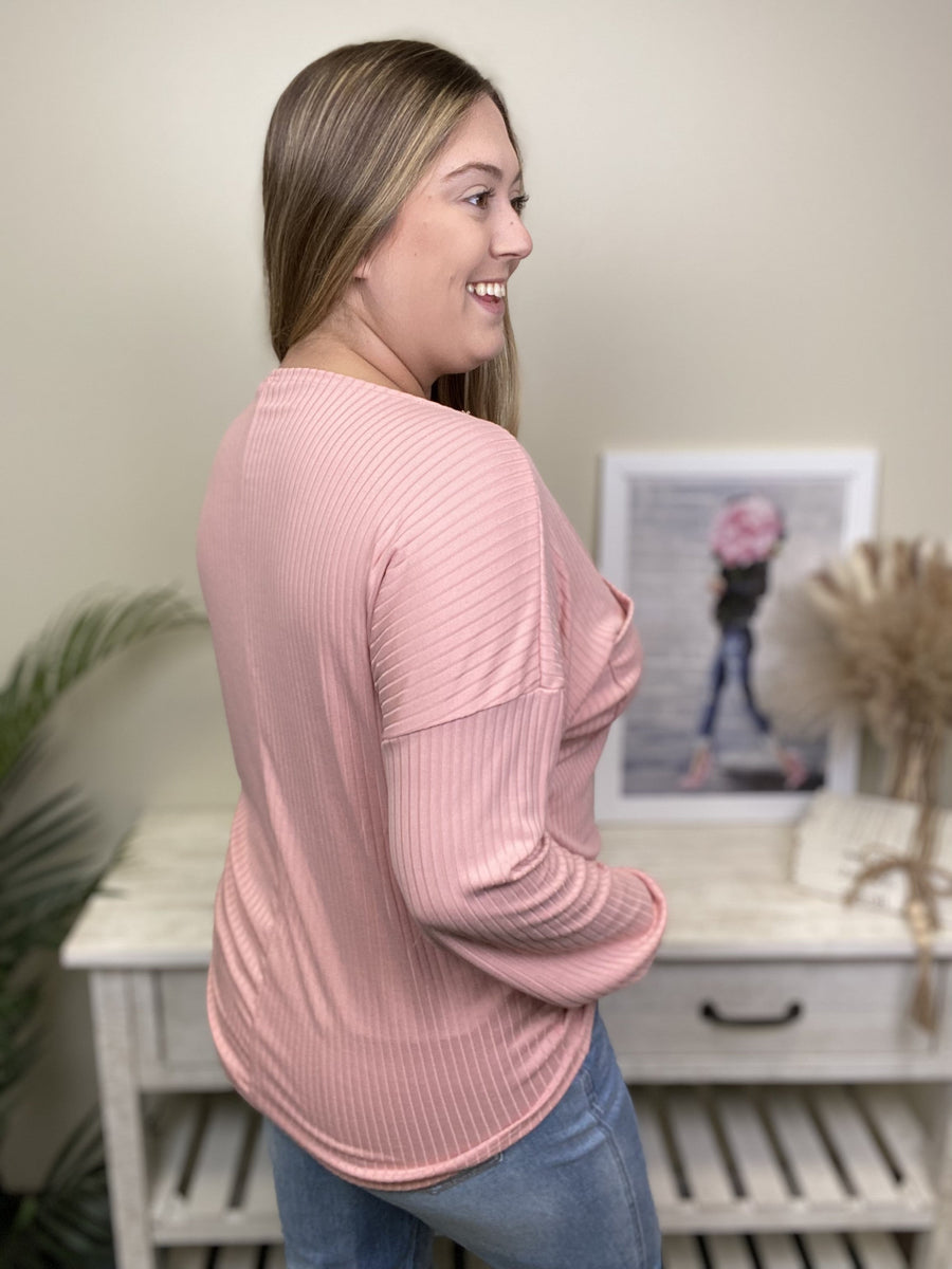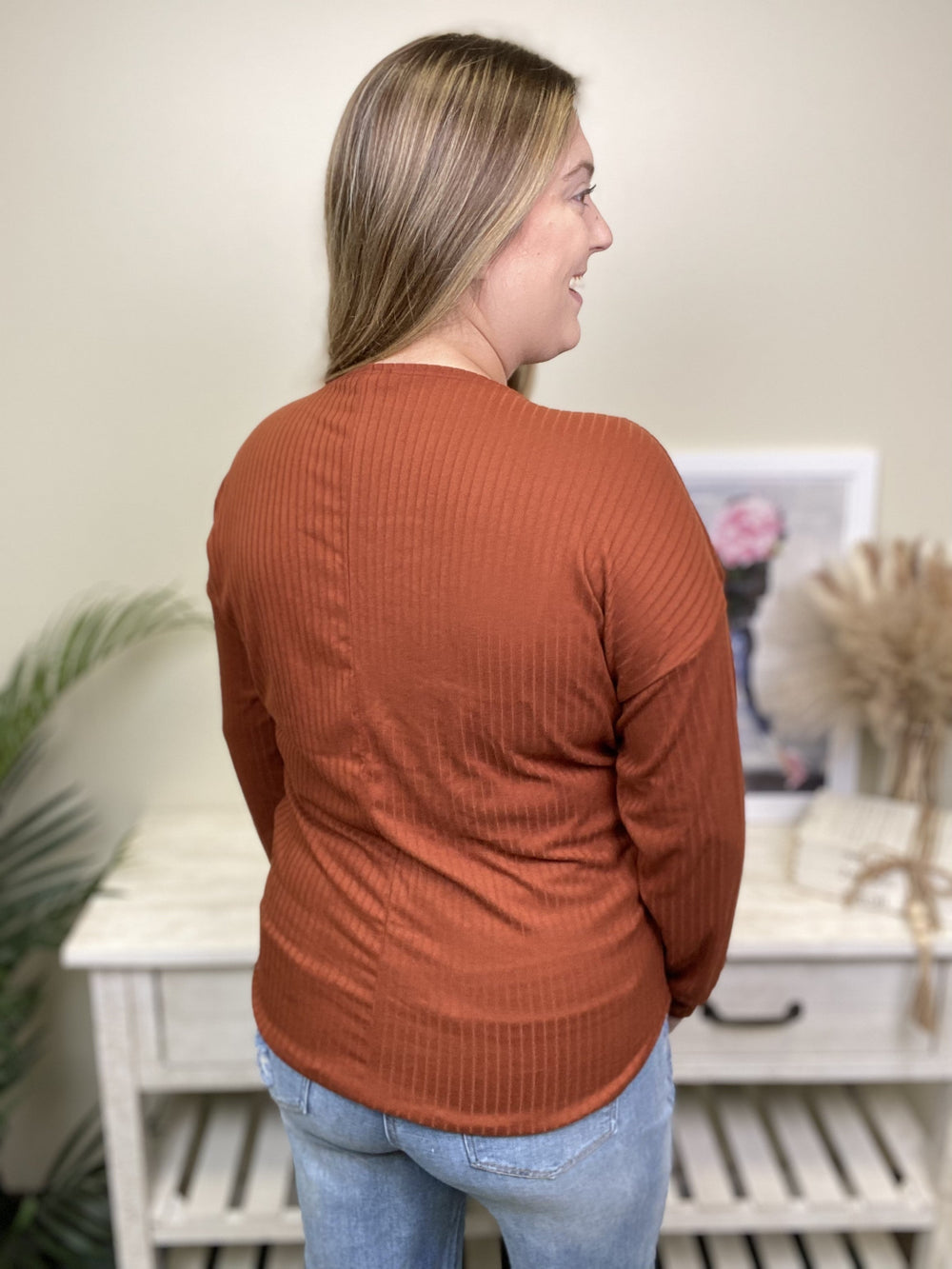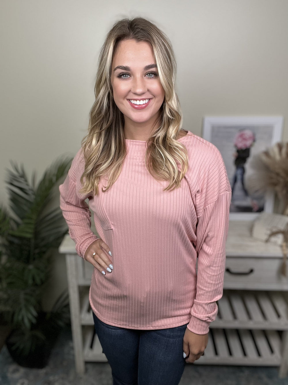 The Dreaming Bigger Top by White Birch is a long sleeve knit top featuring a rounded neckline, a front chest pocket, a rounded hi-lo hemline, and a soft, stretchy, ribbed self. The Dreaming Bigger Top goes great with leggings and denim.