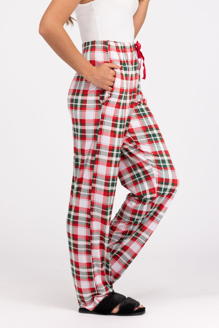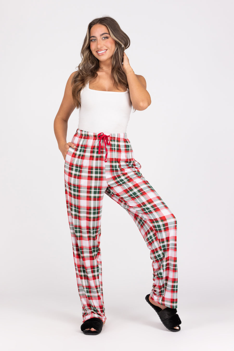 The Dreaming Of A White Christmas Sleep Pants by The Royal Standard are thee cutest holiday pajama bottoms you will be adding to your closet! They feature a super soft plaid pattern, flare leg and elastic waistband with drawstring.