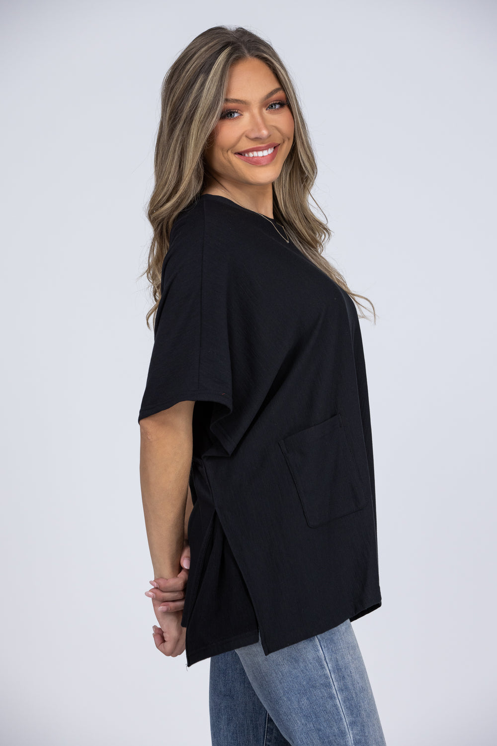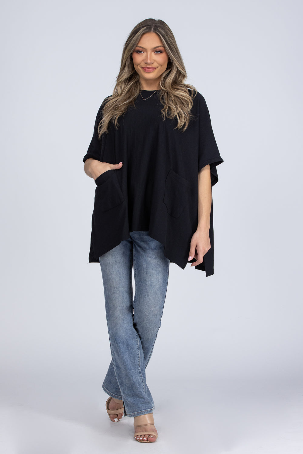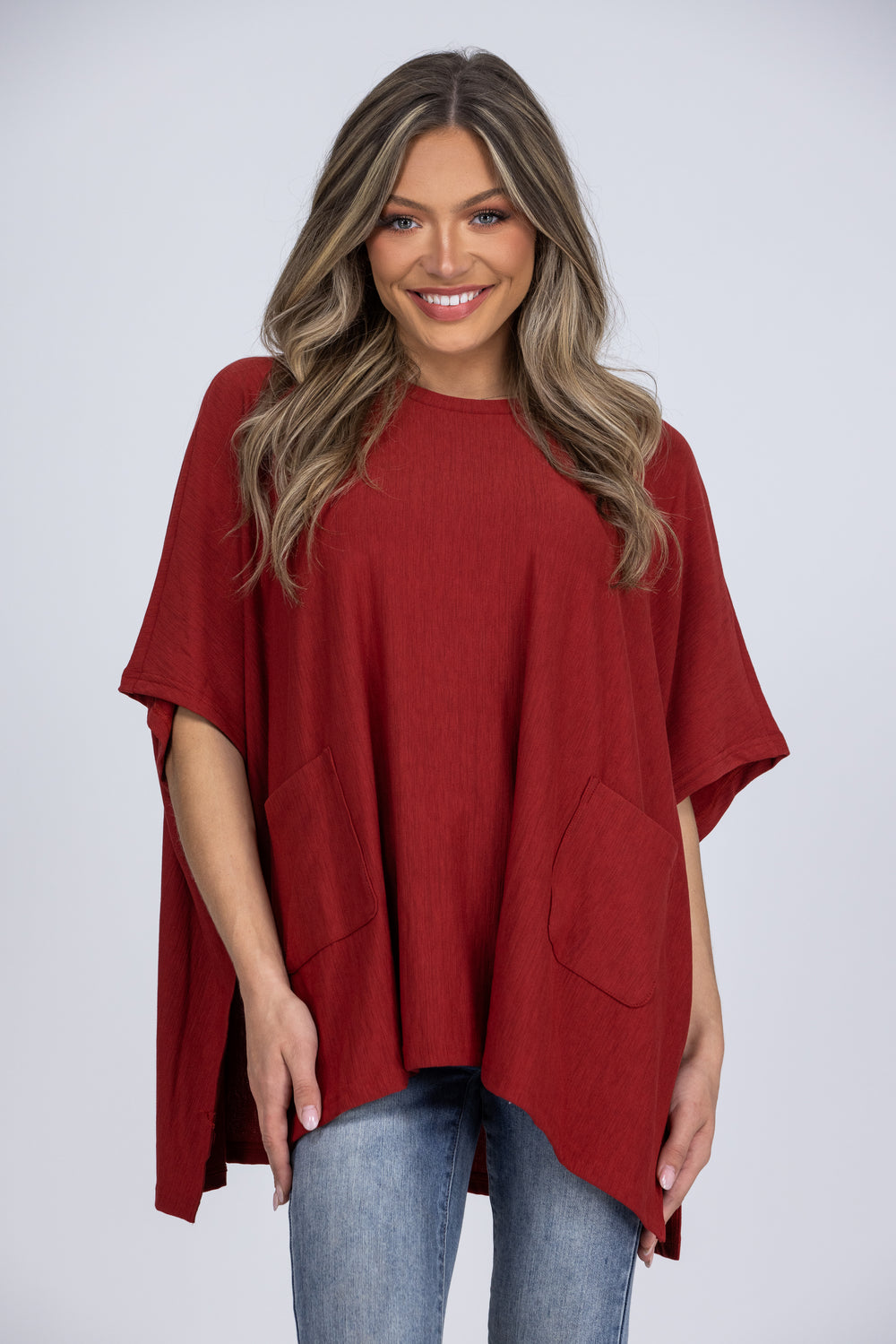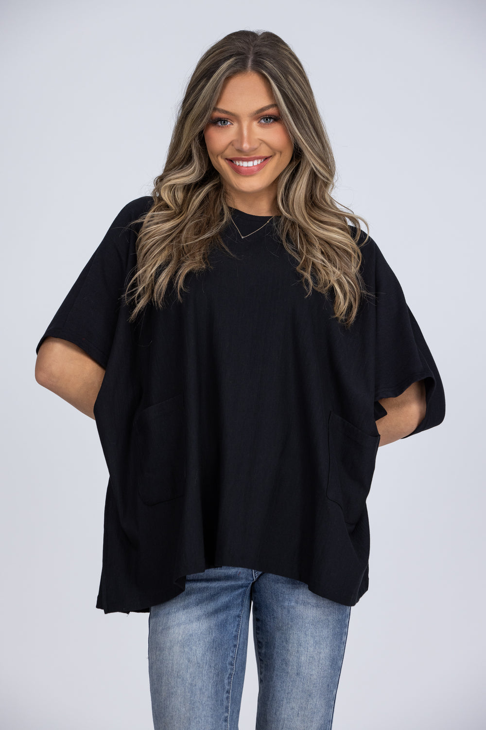 The Drop Of Love Top by Heyson is the oversized top of your dreams! This top features a round neckline, two front pockets, loose boxy fit, short undefined sleeves, and flattering side slits. This is your go to for comfort!