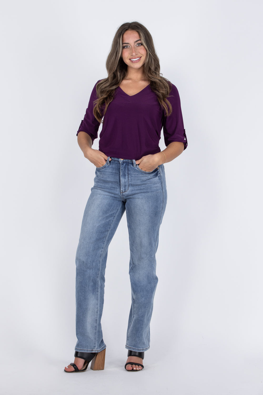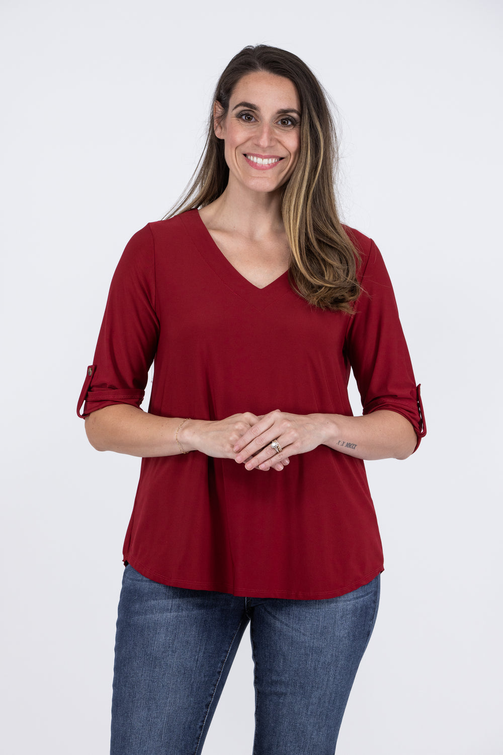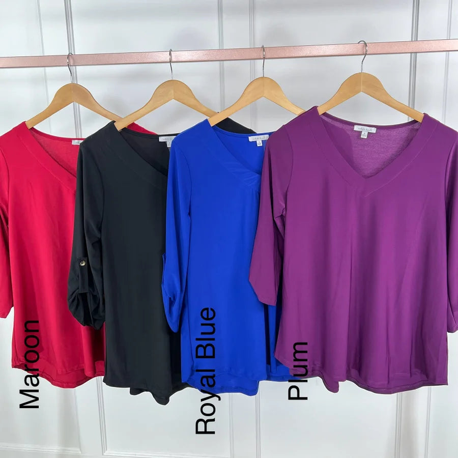 Spend your day knowing that nobody can resist you in The Easy Going Cutie Top from White Birch. It'll easily become an everyday basic favorite. It features 3/4 sleeves with button cuff, V neckline and a flowy bodice. The Easy Going Cutie Top is the perfect top to dress up or down for any occasion.