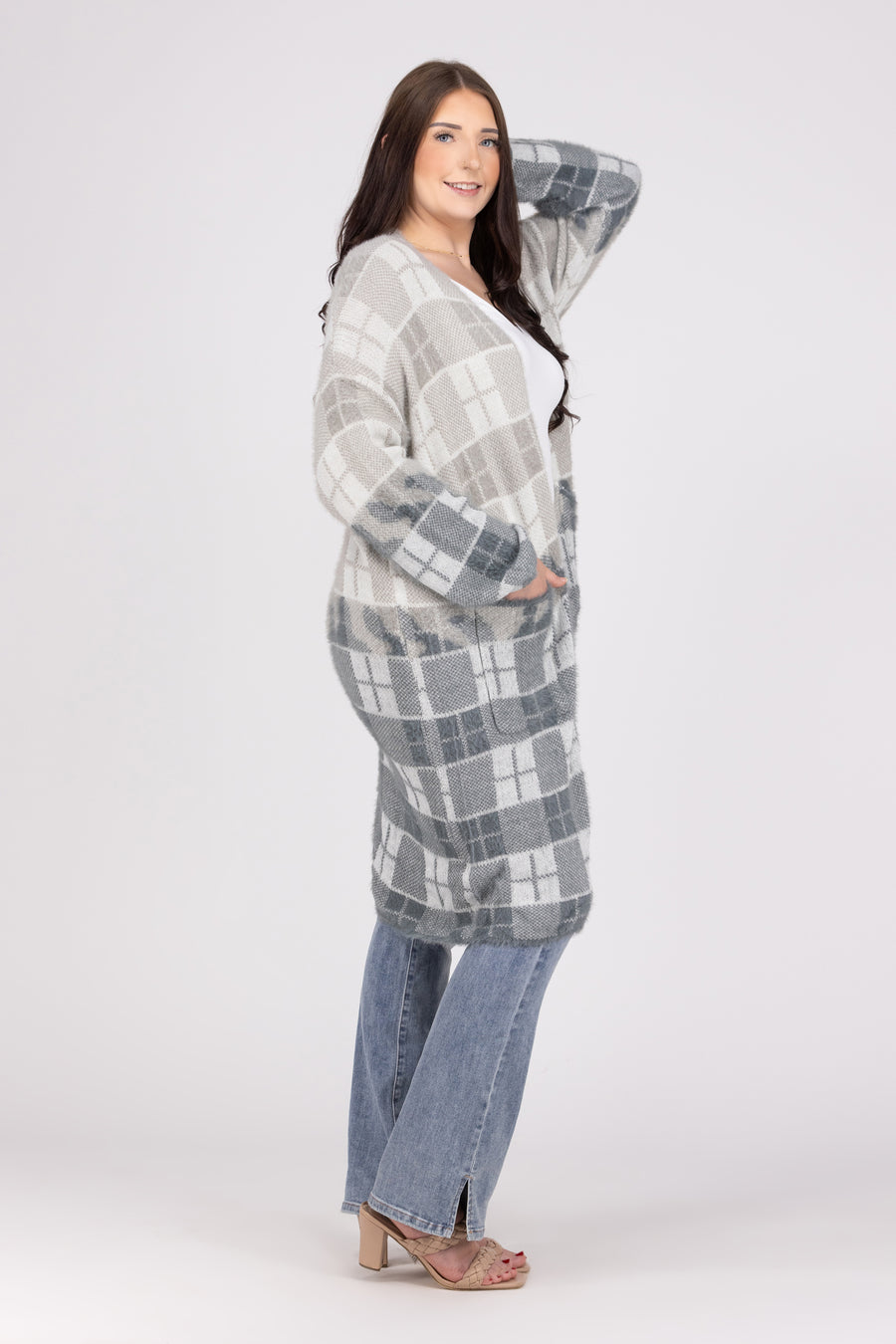 Embrace Comfort Women's Plaid Drop Shoulder Cardigan