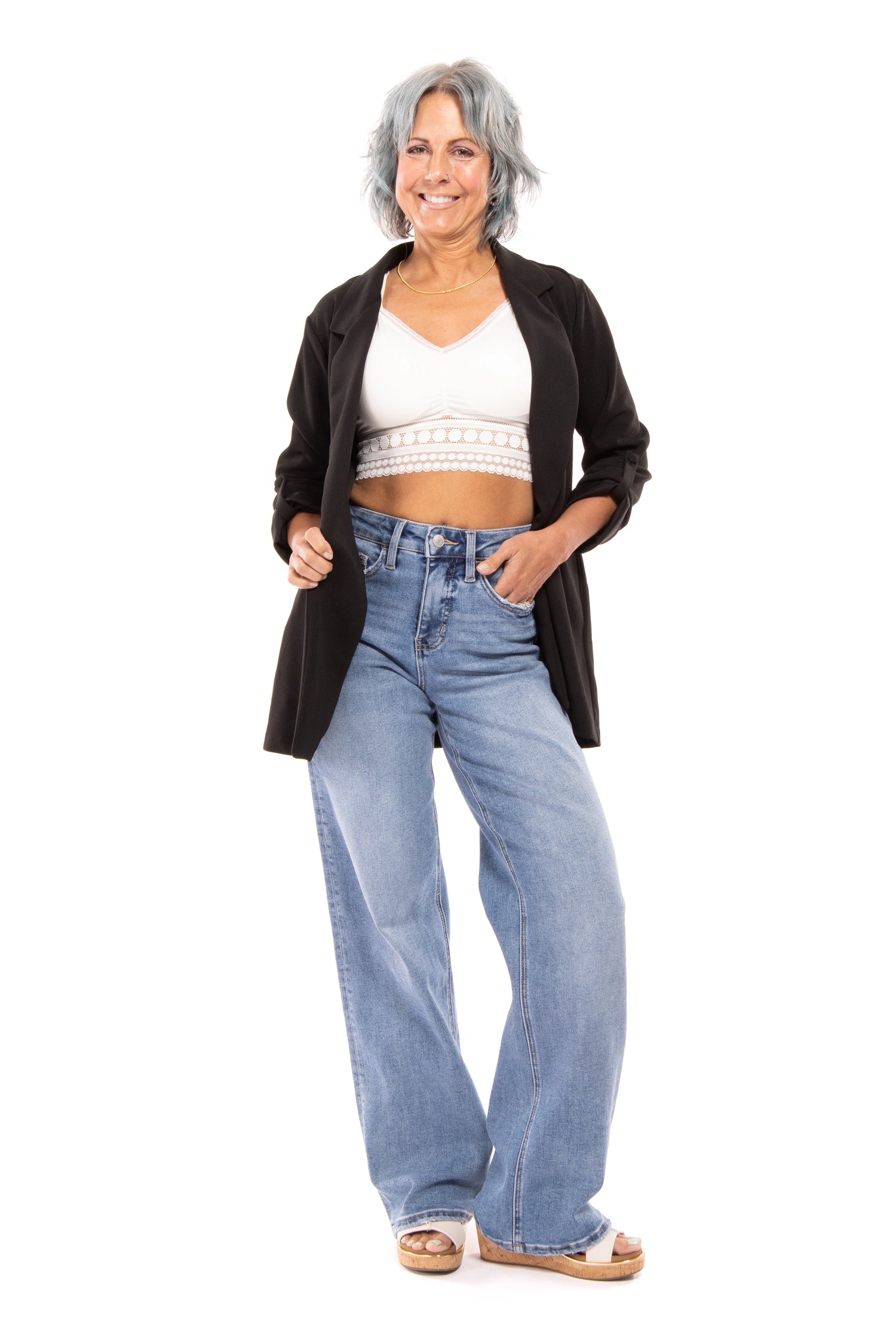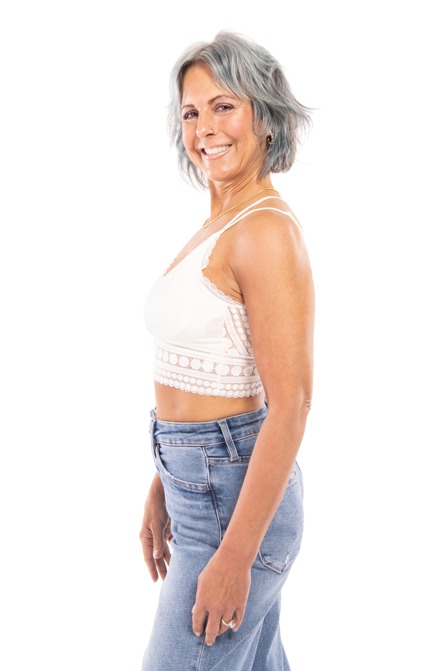 The Emmy Bralette by Jady K is a comfortable piece that will make you feel confident and beautiful. It features a lace trim, padded cups, adjustable straps and a hook and eye closure. It’s made of soft and stretchy fabric that will hug your curves and support your bust. You can wear it under a sheer top for a flirty look.