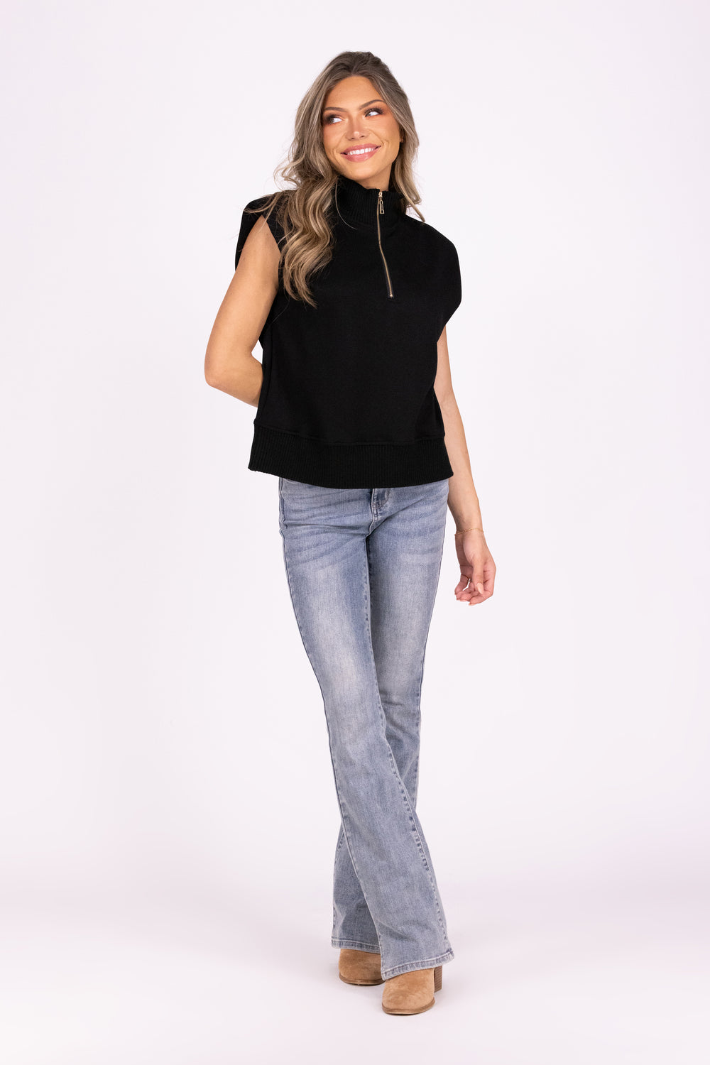 Get everything you want with our Everything She Wants Sleeveless Top from White Birch! This solid knit top features a gold half zip front, ribbed neck and hem, and even shoulder pads for extra style. Upgrade your wardrobe with this must-have piece.