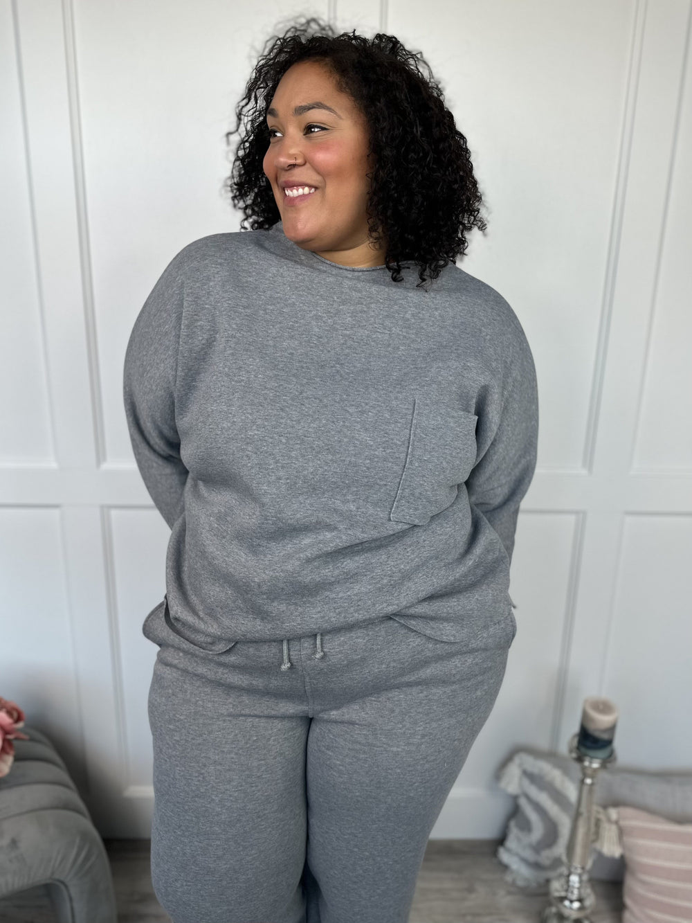 The Feel the Wind in Your Hair Long Sleeve Pullover by White Birch will give you that feeling of cruising down the highway on a long road trip with the windows down. It features a high-low hem, a functional front pocket, long sleeves, and a jewel neckline. Pair with our "Days Off Wide Leg Sweatpants" for the matching look or with joggers or leggings.