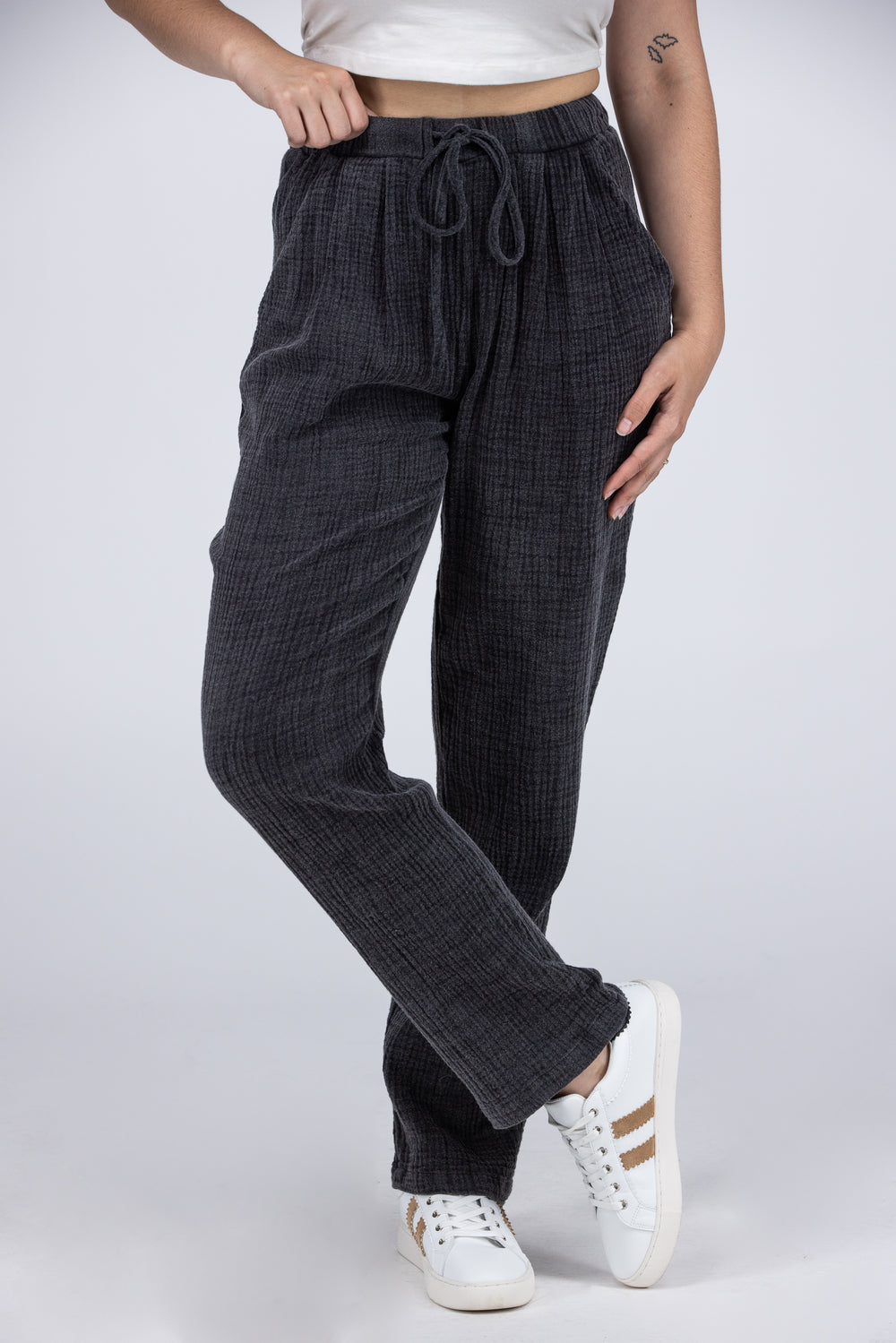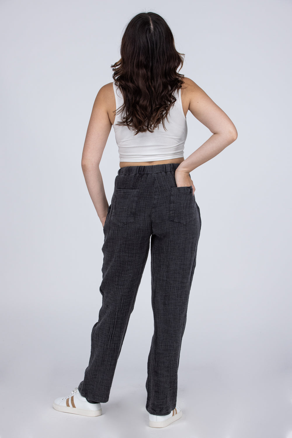The Feeling Important Pants by Heyson will have you feeling like a very important person! They feature an elastic waist with drawstring detail, straight leg, front and back pockets and a mineral washed gauze fabric. Pair these bottoms with a crop top and wedges and a denim jacket over top for those cooler days! The unique color of the pigment vintage wash is achieved through a special dye and washing process. Results vary from one another, creating a unique and natural variance in texture, distress, and shade. Yours is truly one-of-a-kind. These are intentional and not defective.