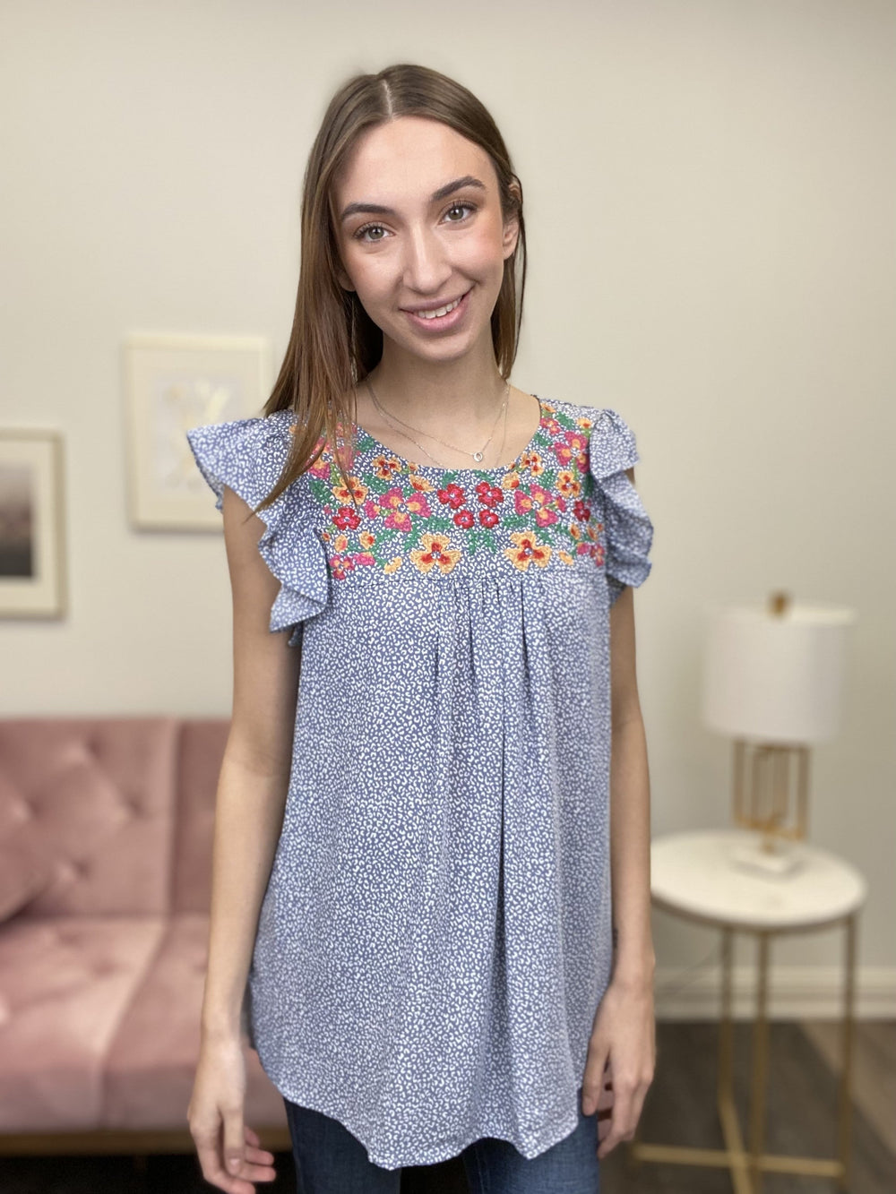 Feeling The Love Women's Embroidered Ruffle Cap Short Sleeve Top *Final Sale*