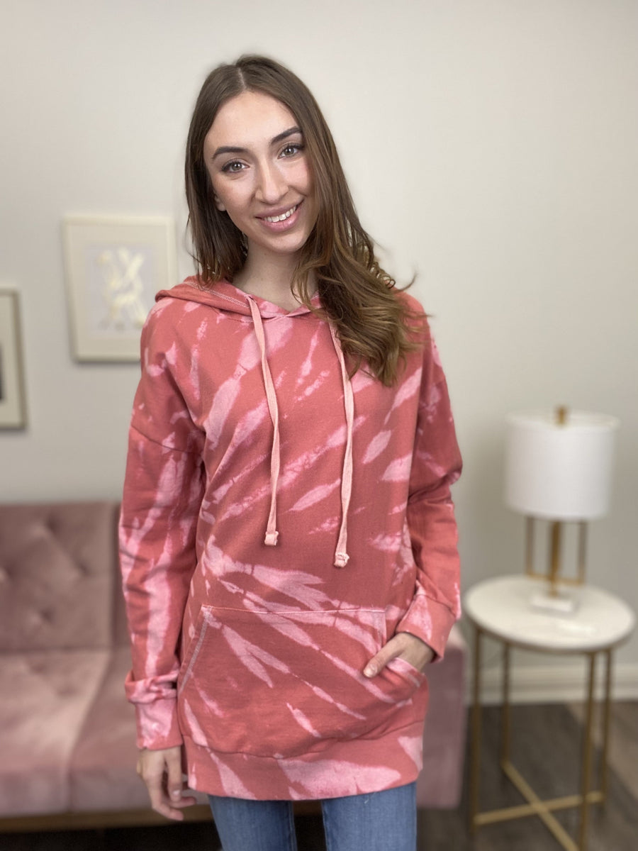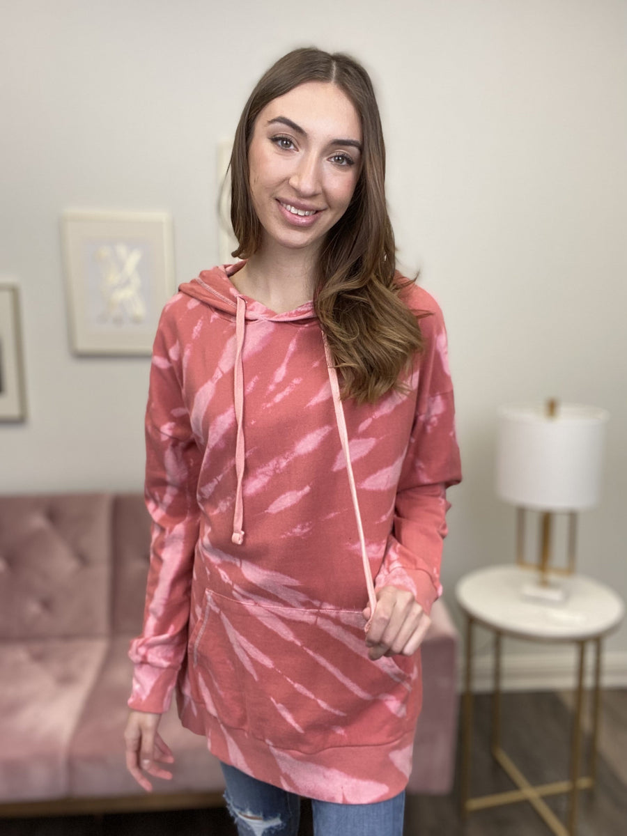 The Feeling The Wind Top by Like Love is a great transitional hoodie for both spring and summer! This lightweight top features a hooded neckline with functioning drawstring, long cuffed sleeves, a front pouch pocket, and a straight hemline. The tie dye effect of the fabric brings this hoodie to the next level! Whether you are having by the bonfire or just relaxing on the porch this hoodie will keep you nice and warm!