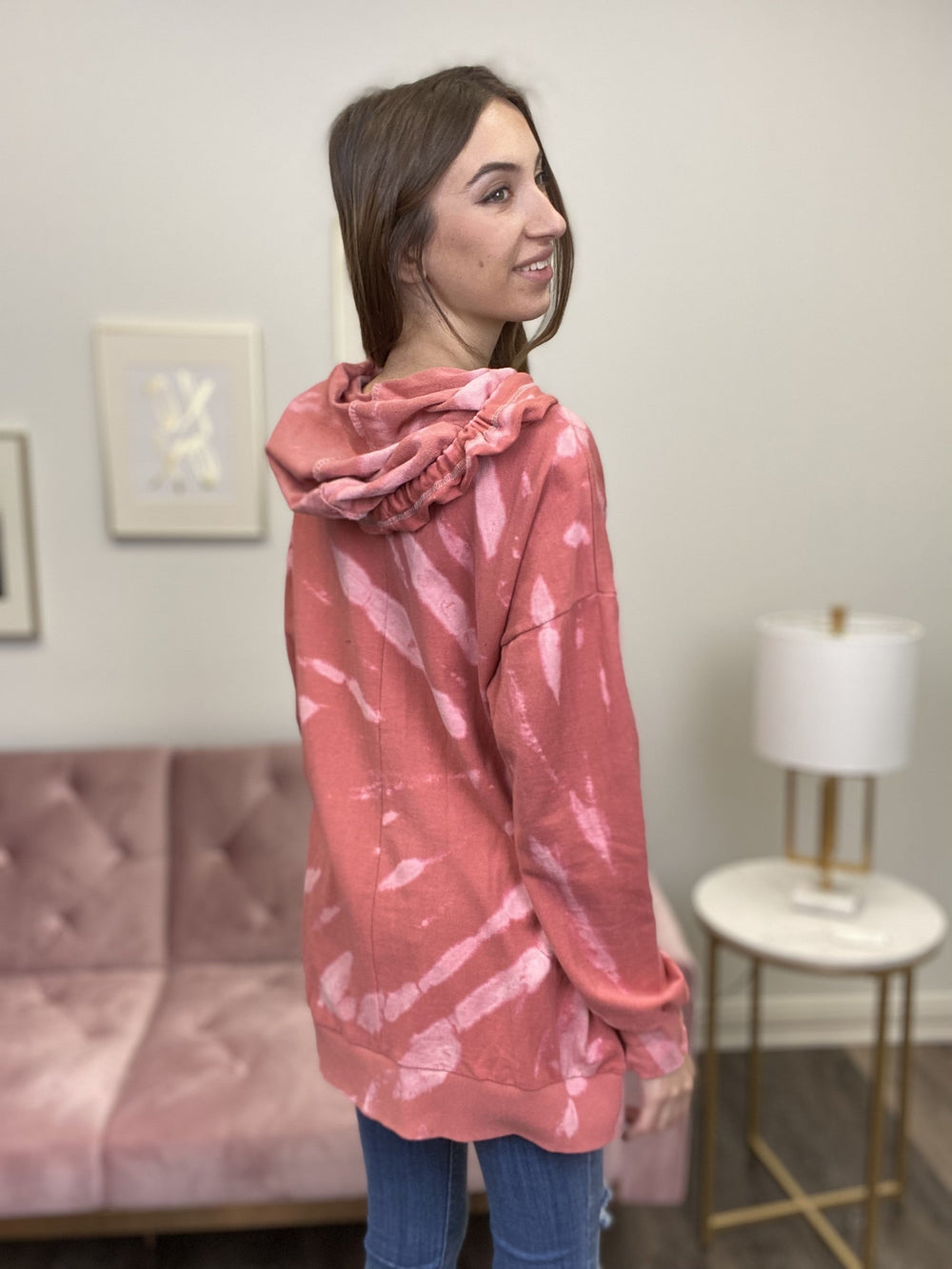 The Feeling The Wind Top by Like Love is a great transitional hoodie for both spring and summer! This lightweight top features a hooded neckline with functioning drawstring, long cuffed sleeves, a front pouch pocket, and a straight hemline. The tie dye effect of the fabric brings this hoodie to the next level! Whether you are having by the bonfire or just relaxing on the porch this hoodie will keep you nice and warm!