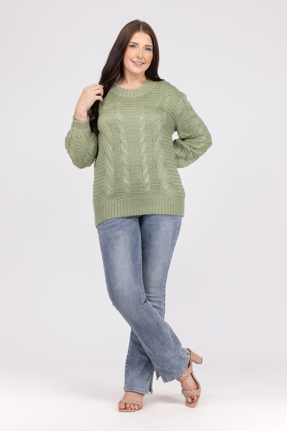 The First Love Top from Andree by Unit will have you falling in love for the first time all over again! This super soft sweater features a round ribbed neckline, long balloon sleeves with fitted cuff, a straight ribbed hemline, and absolutely gorgeous cable knitting on the bodice and sleeves. Who says you have to take this sweater off? No one.