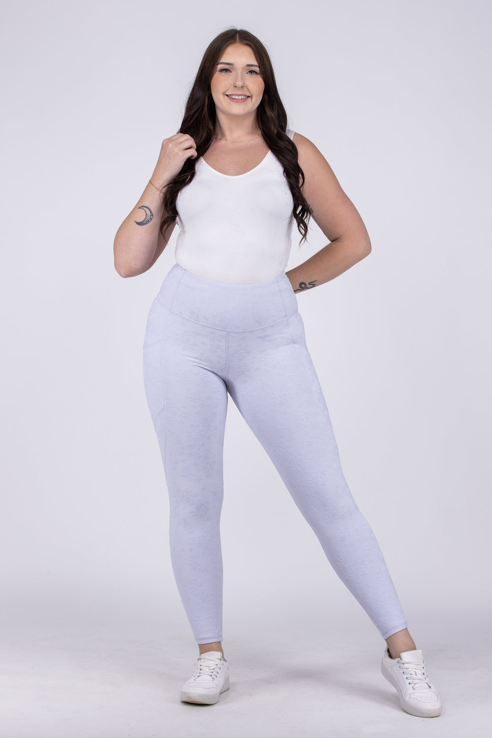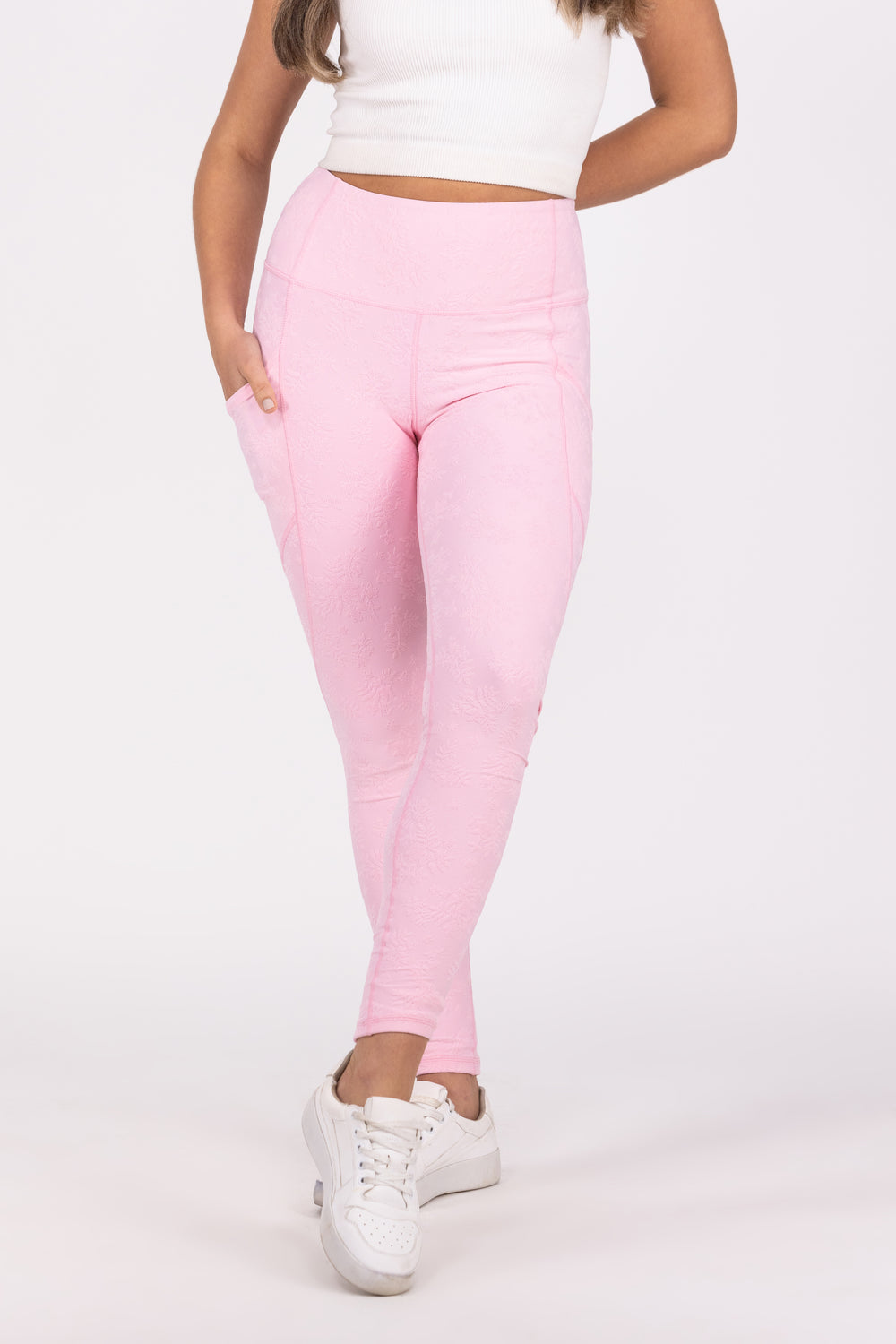 The Florette Leggings by Mono B are the leggings of your dreams. These full length moisture wicking leggings feature a textured floral design, functional side pockets and a high waistband for ab support. The Florette Leggings are perfect for a day out or even for a trip to the gym!