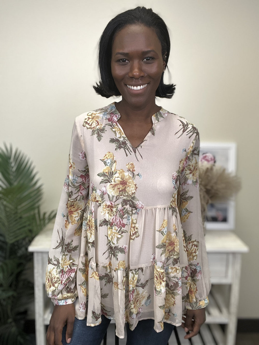 Flow Dreams Women's Floral Tunic Long Sleeve Top *Final Sale*