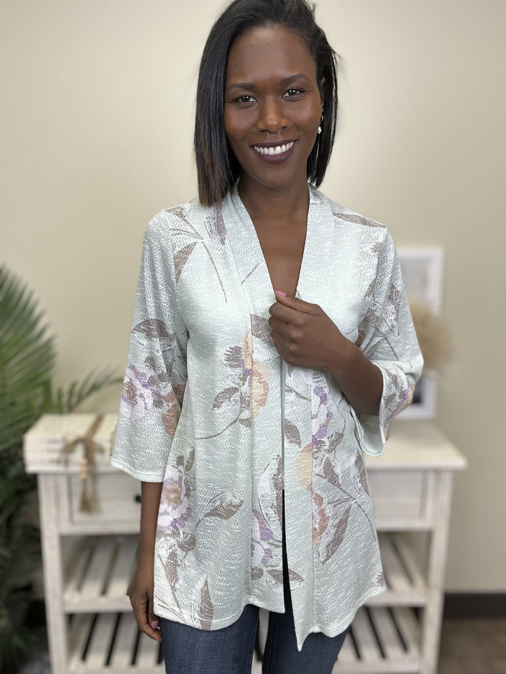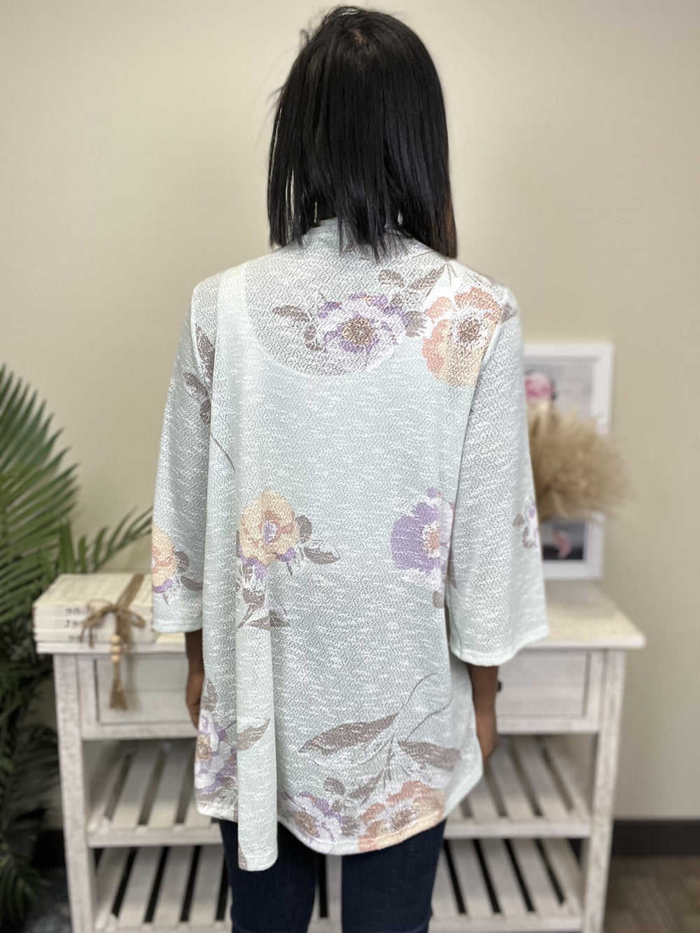 The Flowers In The Attic Cardi By Oddi is a floral print mesh maxi cardigan. It features 3/4 length sleeves with an open front. The fabric is a lightweight novelty mesh. Pair with a tank underneath for the perfect outfit!