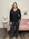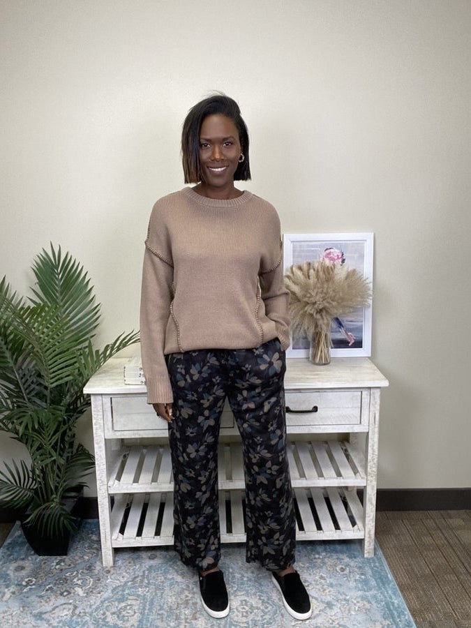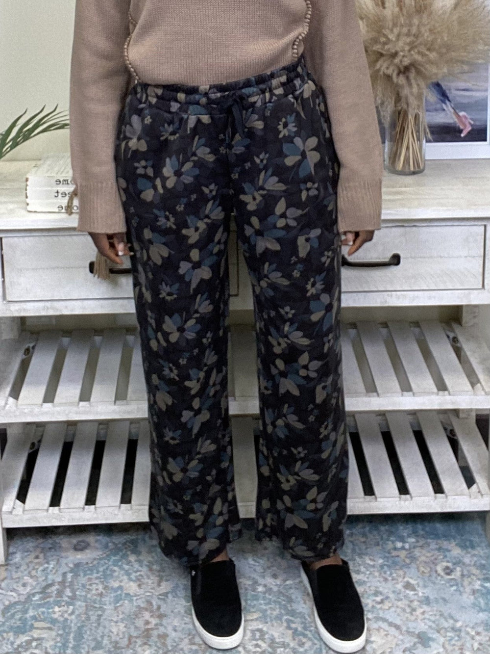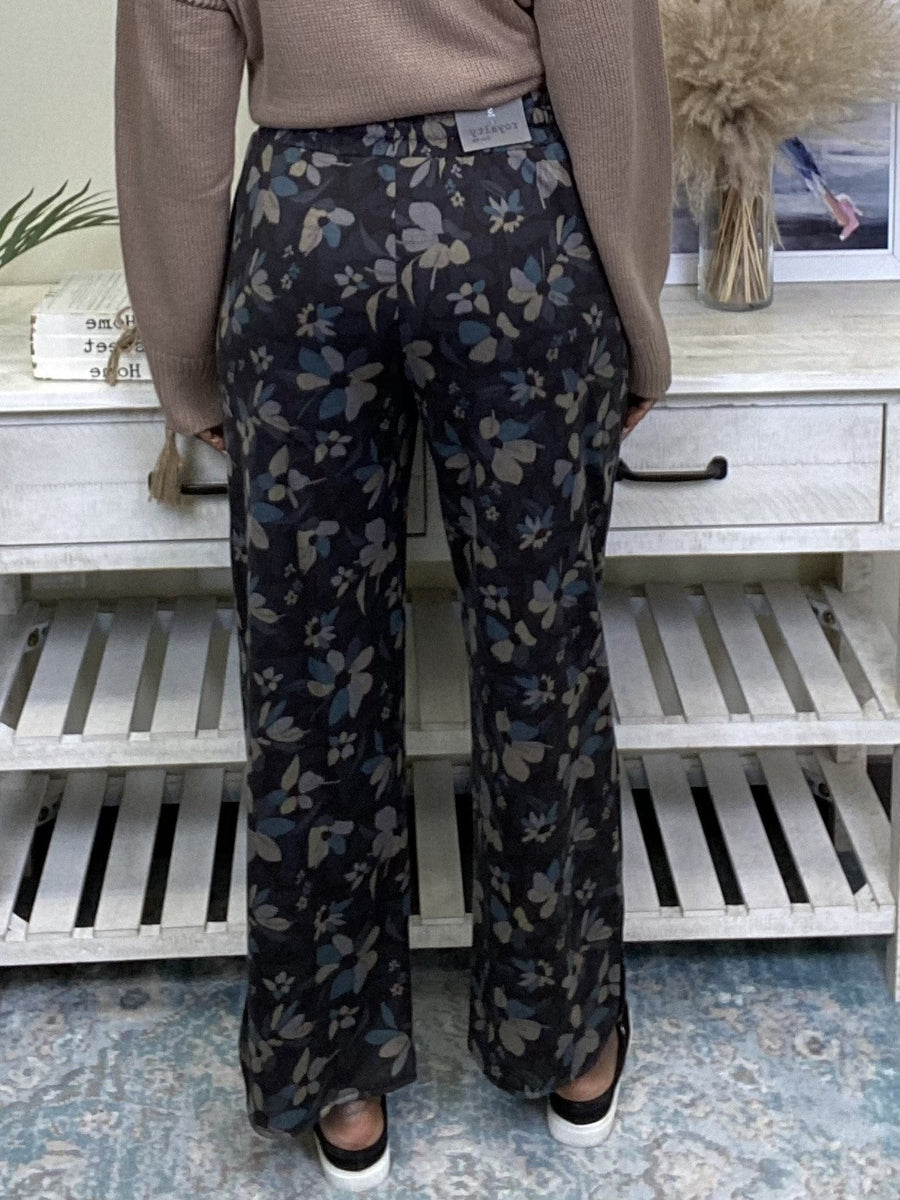 The Forest Garden Wide Leg Drawstring Pants from YMI are great for a comfy day indoors. These pants feature a wide leg with a side slit at the ankle, a functional drawstring, elastic waist band, and functional front pockets.