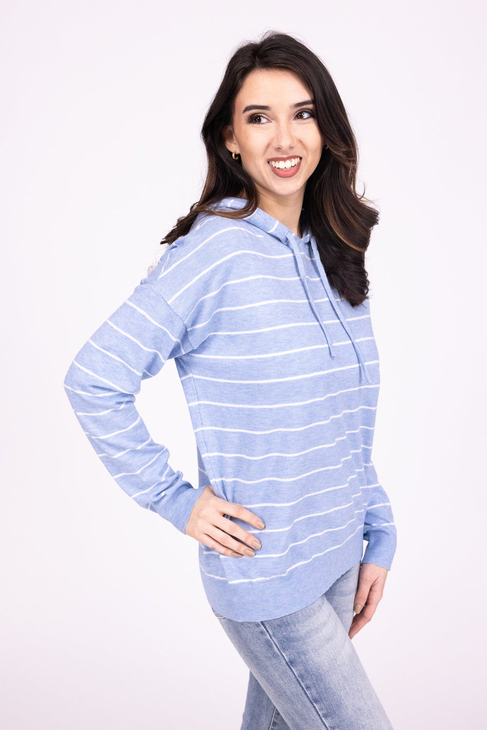 Wrap yourself in comfort with the Forever Love Hoodie Sweater from Staccato! Featuring ribbed cuffed sleeves, stylish stripes, and a hood with functional drawstrings this top will keep you comfy and always feeling loved. Pair this sweater with denim or leggings for a comfy and casual look. Feel forever cozy and Forever Love with this sweater!