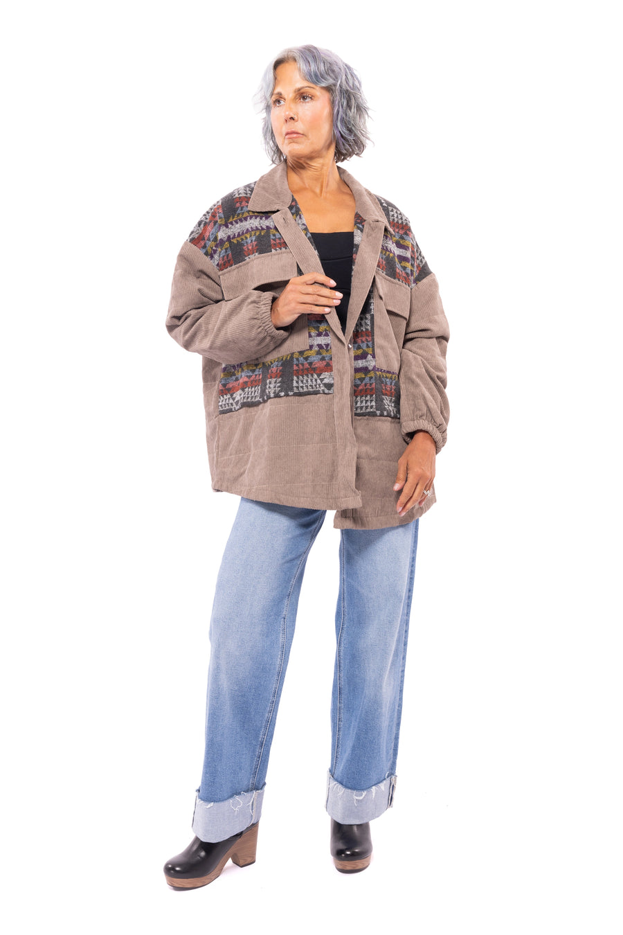 The Free Spirit Shacket by J.NNA perfect shacket for enjoying the chillier weather, stay comfy and in style with this cute shacket! This shacket features a collar, long sleeves with cinched cuffs, two chest pockets, button up front, rounded hemline, corduroy quilted bodice and contrasting Aztec print. The Free Spirit Shacket is perfect for layering and can be paired with your favorite outfits!