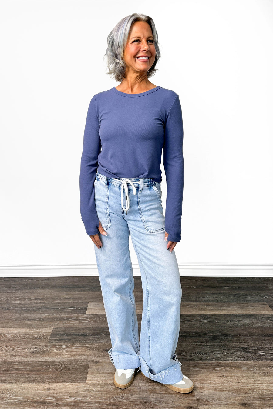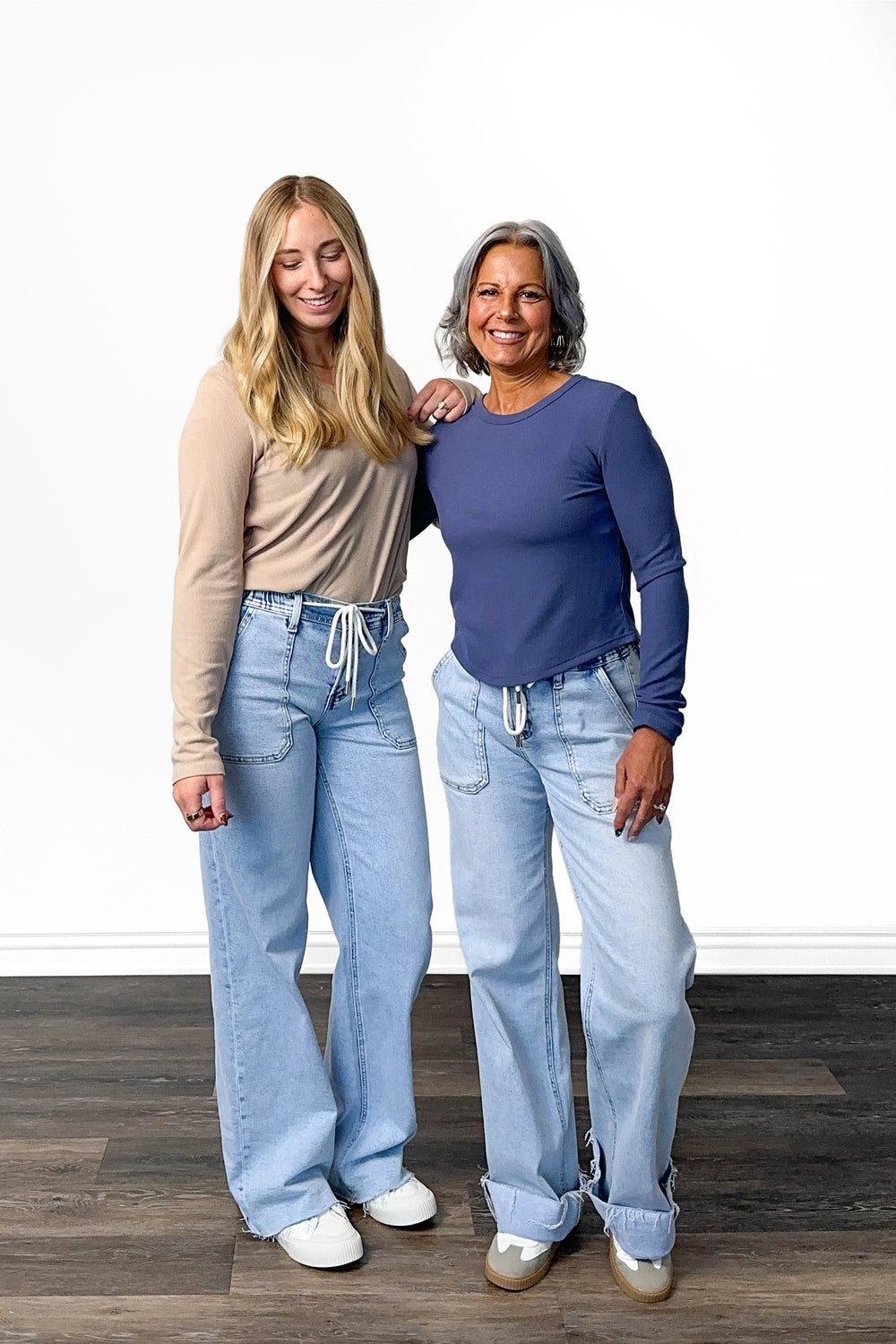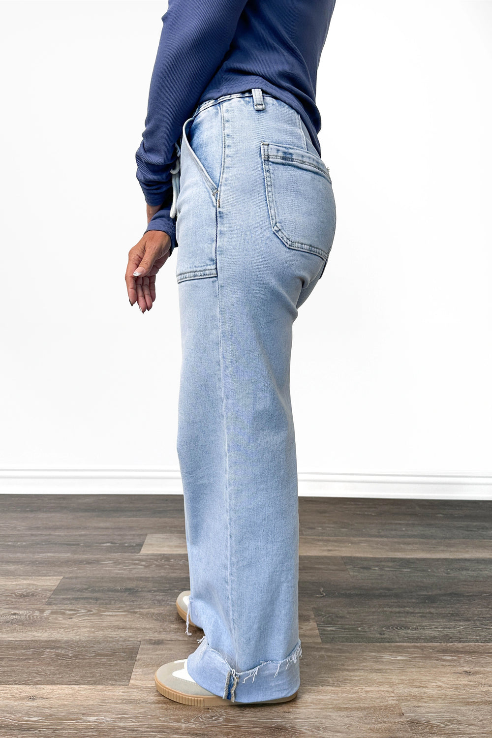The Alanna from Lovervet: High-Rise Drawstring Wide Leg Denim