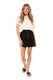 The Fun Dreams Mini Skirt from Very J is a solid cotton A line mini skirt. It features a button down front, an elasticized paper bag waist, and side and back pockets. It is fully lined.