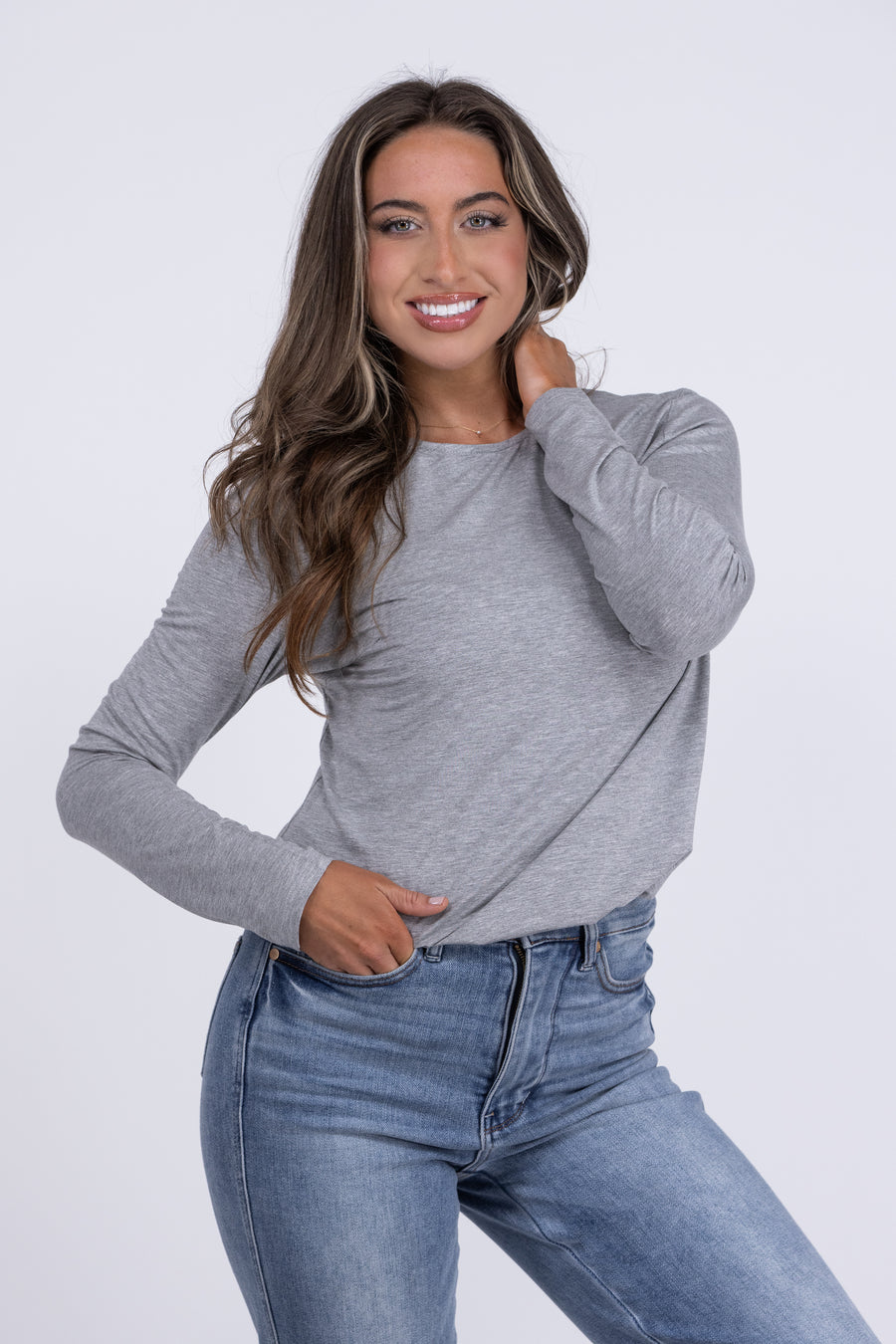 The Give Me More Top by Aryeh will have you wanting more! It features a rounded neckline, long sleeves, and a high/low hemline. This top is a perfect layering piece or to throw on when you're on the go.