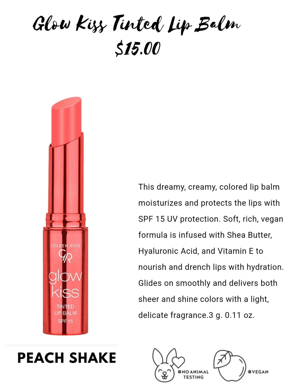 This dreamy, creamy, colored lip balm moisturizes and protects the lips with SPF 15 UV protection. Soft, rich, vegan formula is infused with Shea Butter, Hyaluronic Acid, and Vitamin E to nourish and drench lips with hydration. Glides on smoothly and delivers both sheer and shine colors with a light, delicate fragrance.3 g. 0.11 oz.