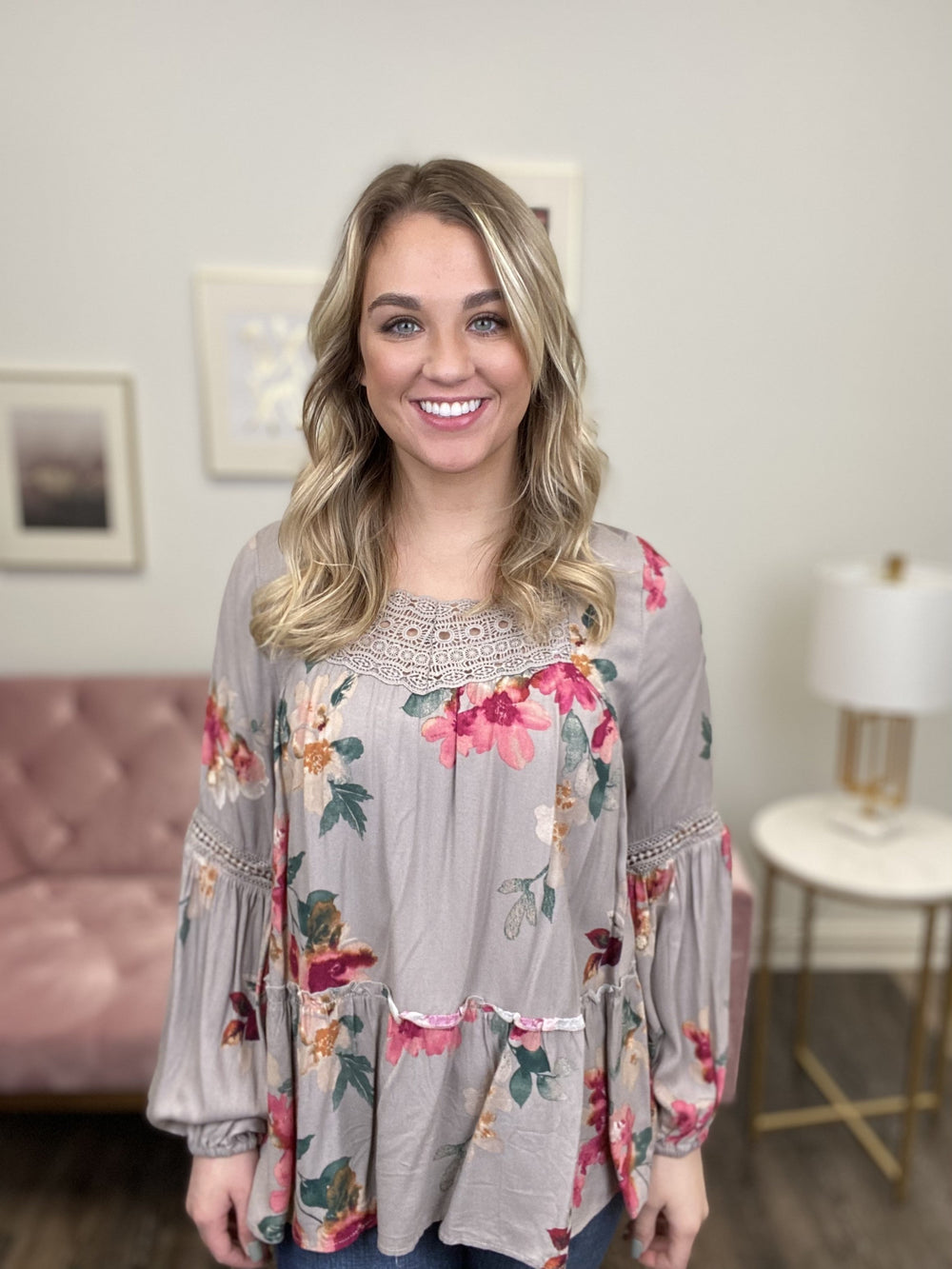 Going All Over Women's Ruffled Lace Long Sleeve Top *Final Sale*