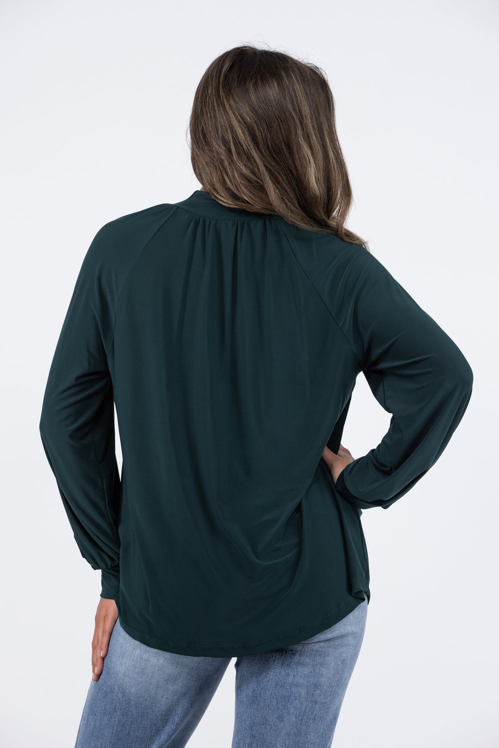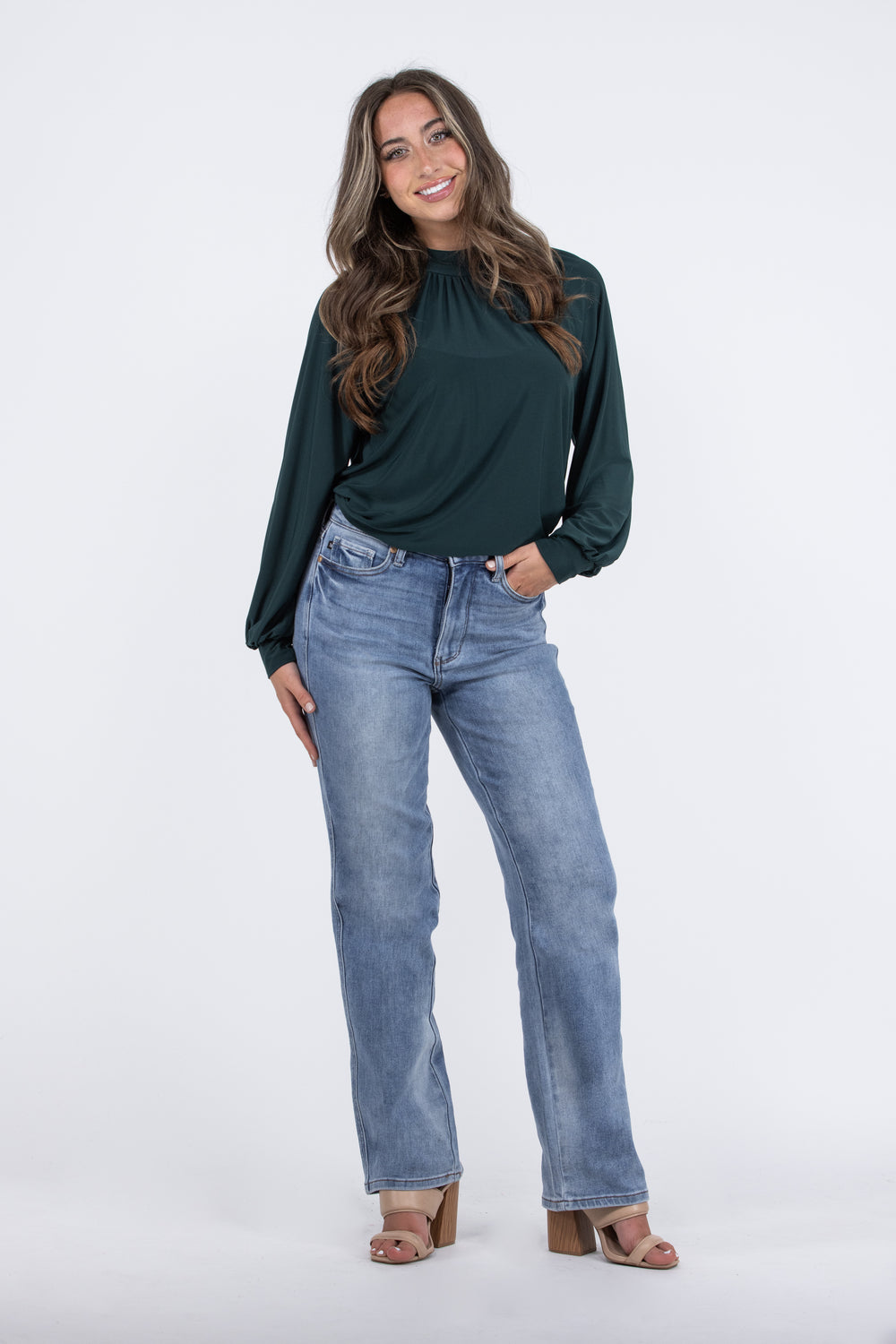 You are going to want The Going With You Top from White Birch to go with you everywhere! It is a soft and cozy long sleeve solid knit top with a mock shirred neckline featuring band cuff long sleeves and a loose fit. The fabric is a lightweight slinky knit. The Going With You Top is perfect for any occasion and is the perfect piece to dress up or down!