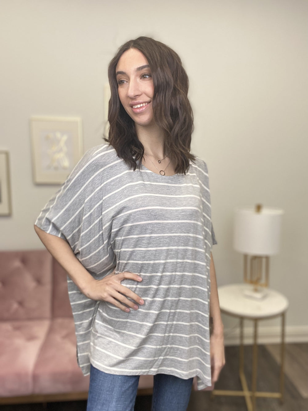 The Hang In There Top by Cotton Bleu has a nice blocky shape and will hang beautifully off of you! This top features a round neckline, short dropped sleeves, a straight hemline, and flattering side slits. This top is the ultimate in comfort and you will never want to take it off!