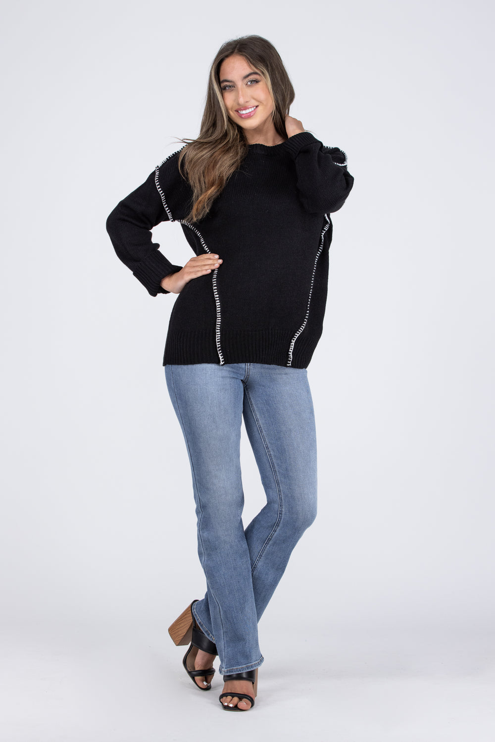 The Happier Then Ever Top By Like Love From Sew In Love is a comfy and warm sweater to see you through the cold days! It features a crew neckline, long dolman style sleeves, straight hemline, and adorable embroidered stitch details. Pair this sweater with a cute scarf for a fashion forward look!