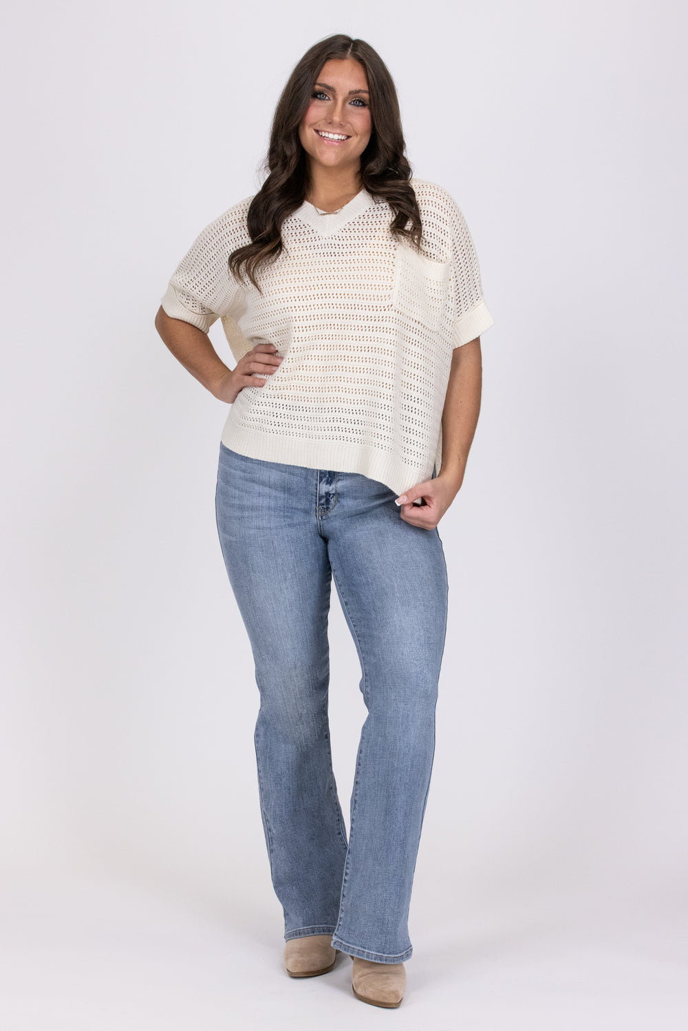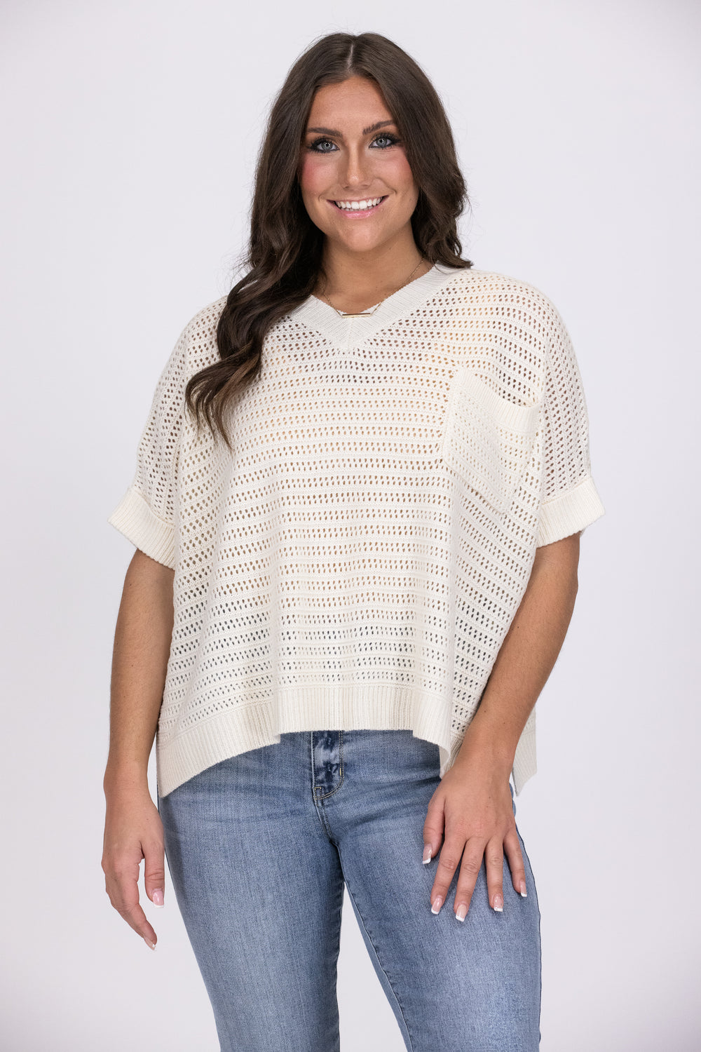With its charming design, the Hard To Leave Sweater from Wishlist is sure to catch attention. It features a flattering silhouette and thoughtful details that add a touch of elegance to your outfit. It offers a V neckline, short sleeves, front pocket and a straight hemline with side slits. Whether you're dressing up or going for a casual look, the Hard To Leave Sweater is versatile enough to suit any style.