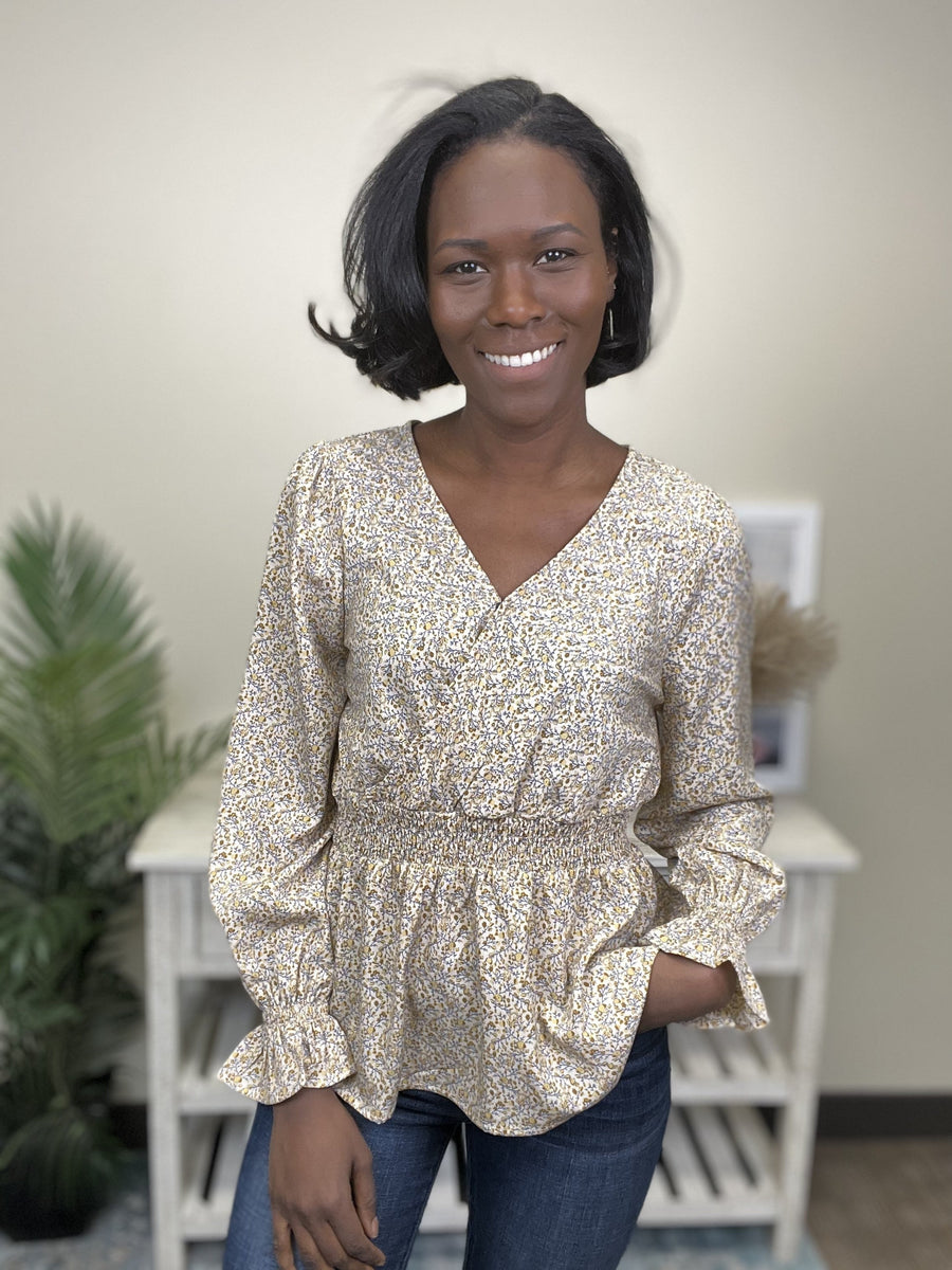 The Heart On My Sleeve Top by Hayden will make you feel so delicate and beautiful! This long sleeve top features a surplice neckline with snap button closure for more coverage, smocked and flared sleeved edge, a smocked waistband, and a round flared hemline. This top would look wonderful with a pair of denim and flats!