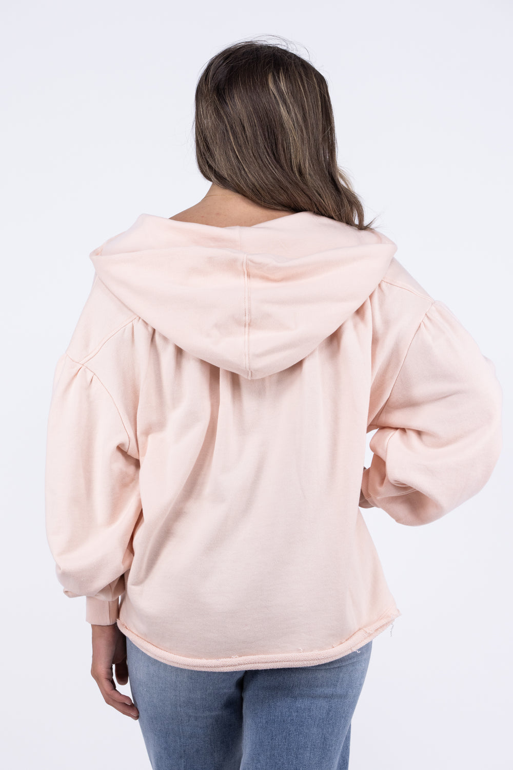 The Hey There Hoodie by Zenana will have people saying "Hey There Where Did You Get That"! This hoodie has an oversized relaxed fit featuring a raw cut V Neckline, long drop shoulder balloon sleeves, raw cut detailing and a high low hemline!