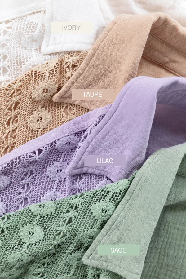 The Hidden in Flowers Long Sleeve Top from Andree by Unit will make you feel like you're in a garden sanctuary hidden away from the world! This top features lace flower patterns, double breast pockets, a button up front, and long sleeves. Pair with your favorite denim and escape to your own hidden garden paradise!