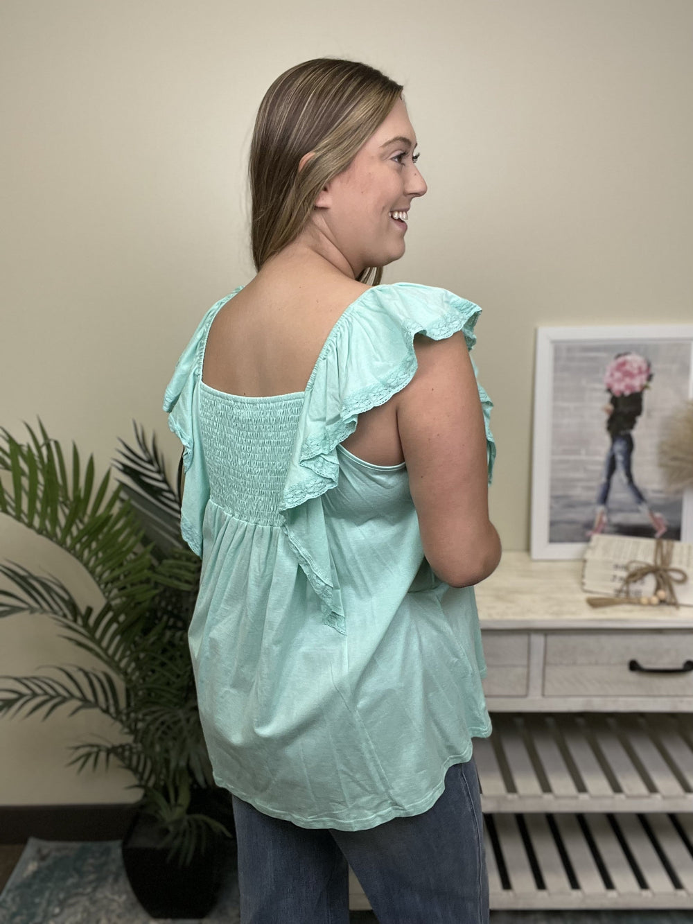 The Hit Me With A Call Top by Easel will be a shirt you can wear when you get a last minute call to go out and have fun! It features a square neckline, ruffled cap sleeve, a smocked yoking, and a flared silhouette. Cute on its own, or you can pair it with gold or silver jewelry for a leveled up look!