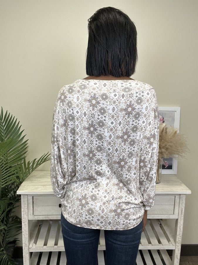 The Hot Mama Top By Oddi is a geometric printed tunic top. It features 3/4 elastic puff sleeves, boat neckline, and a relaxed fit! This versatile top can be worn alone or layered and and goes great with denim. You will definitely feel like a hot mama in this top!