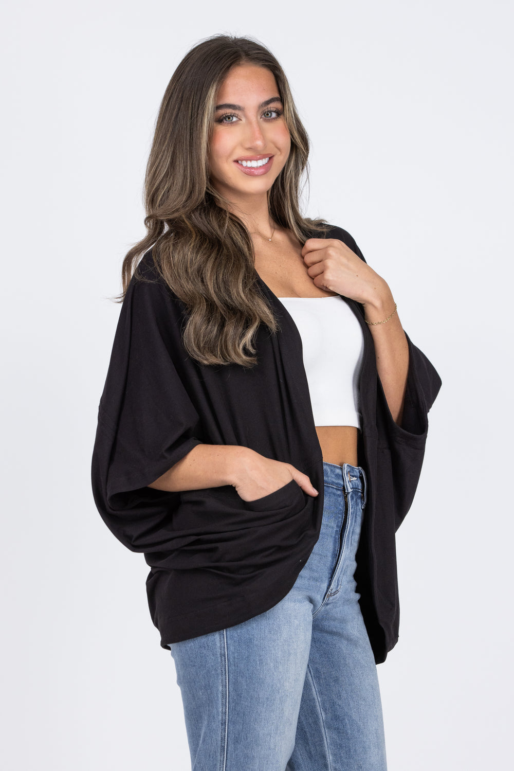 The I like The Way You Work It Cardigan by Rae Mode will be your new favorite cardigan! You can add this cute and simple cardigan on to any of your favorite outfits or any of your active wear fits! This cardigan features two side pockets, quarter sleeves, and an open front.
