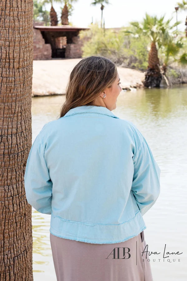 The I'll Follow You Jacket from Giocam is the perfect lightweight jacket. This jacket features floral detailed snap buttons, 4 pockets, snap button wrist cuff closures, and a cropped raw hem. The I'll Follow You Jacket can be worn over your favorite dress or tee making it perfect for any occasion.